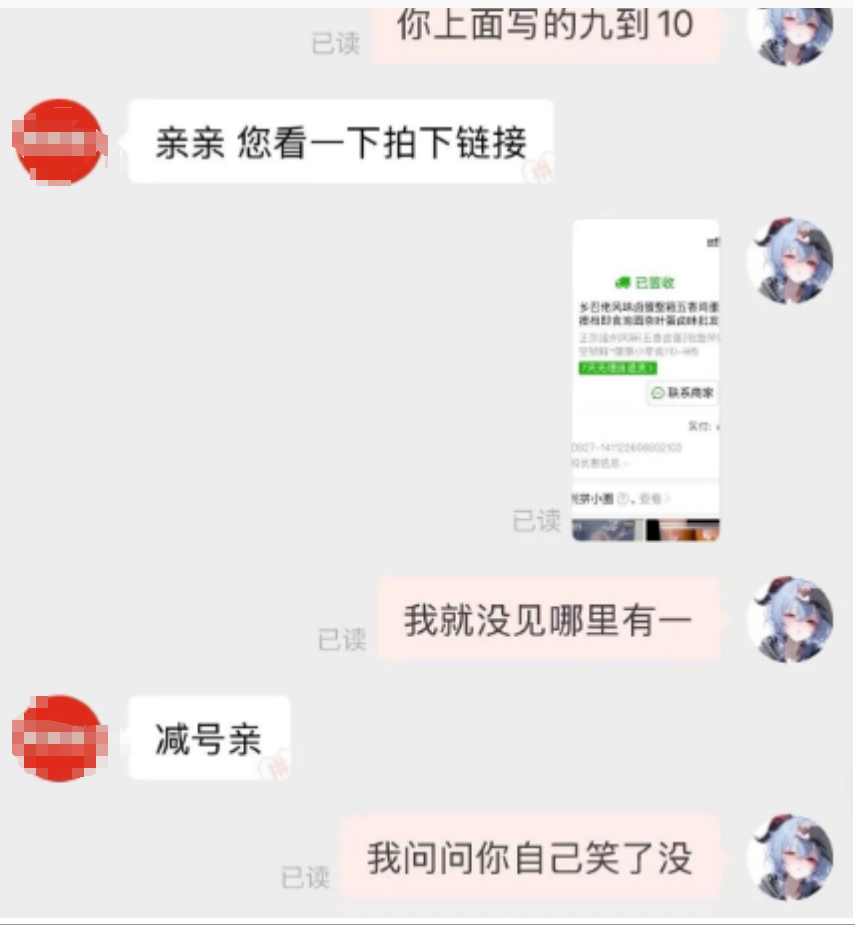 当男子联系商家客服询问时,对方回应称:“页面上的'-'不是区间符号,而是数学减号,10减9就是1枚。”