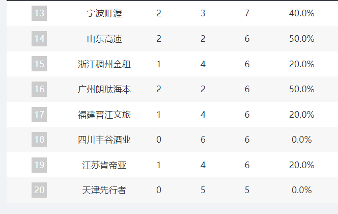 浙江男篮仅排在联赛第15位 截图自CBA联赛官网