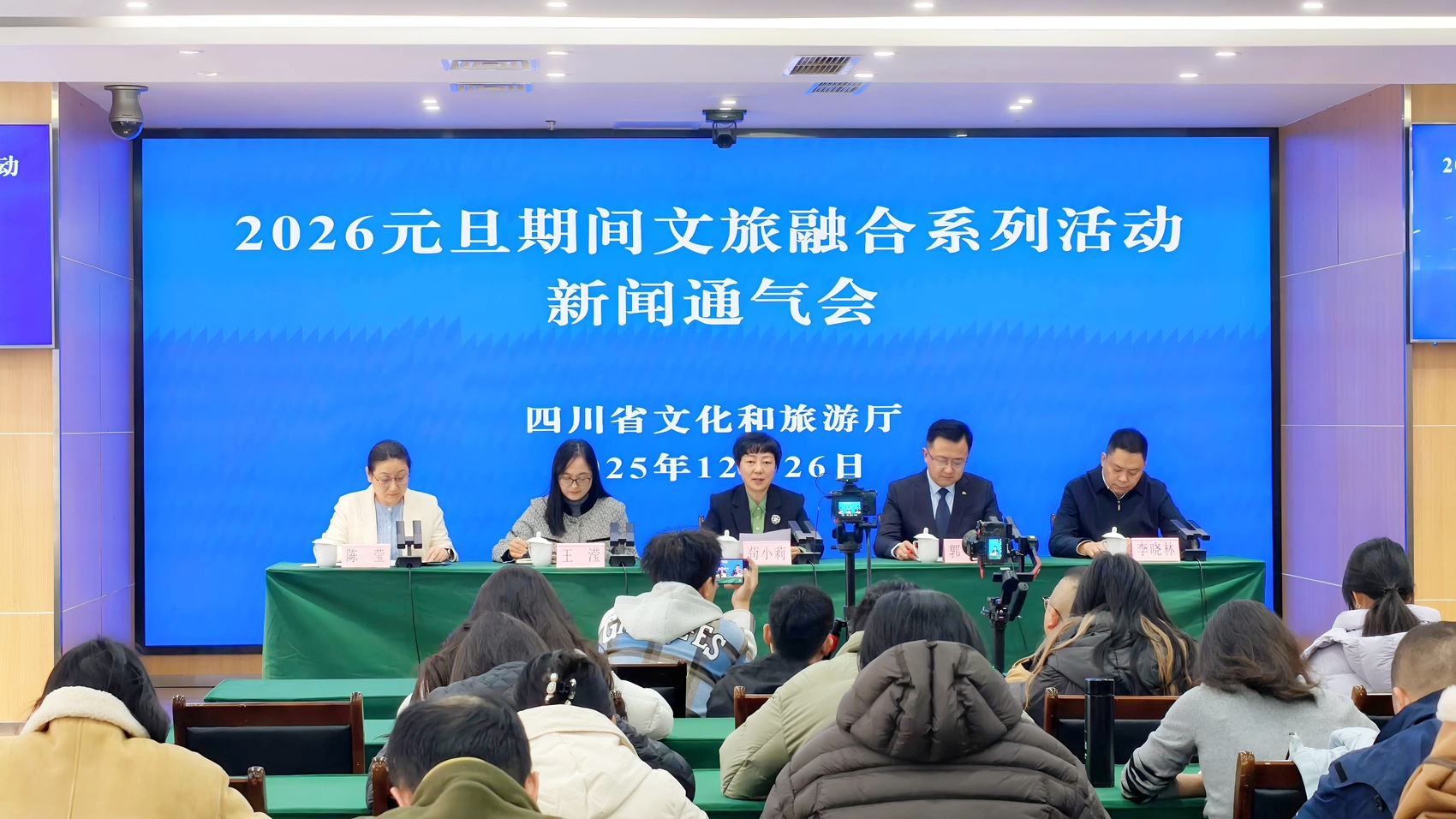 12月26日,四川省文化和旅游厅举行2026全省元旦期间文旅融合系列活动新闻通气会。会上介绍,全省文旅系统精心策划推出系列跨年迎新活动,涵盖文艺演出、文博展览、非遗展示、群众文化、景区焕新、消费促进等板块。活动期间,更有10万张景区门票免费派送等多重实惠暖心的 “安逸好礼”,为广大游客打造迎接新年的多种独特仪式感。