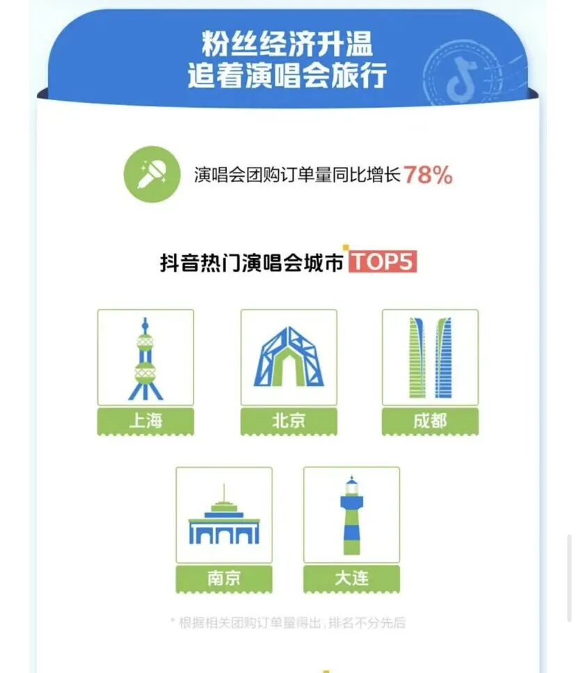 “粉丝经济”持续迸发活力,“苏超”等赛事带动地域消费。数据显示,抖音演唱会团购订单量同比增长78%,上海、北京、成都、南京、大连成为热门演唱会城市。抖音体育赛事曝光超626亿次。其中,“苏超”全面带动参赛城市周末的美食、景区、商圈、夜市消费。5月10日至10月15日,江苏抖音团购销售额同比增长68%。