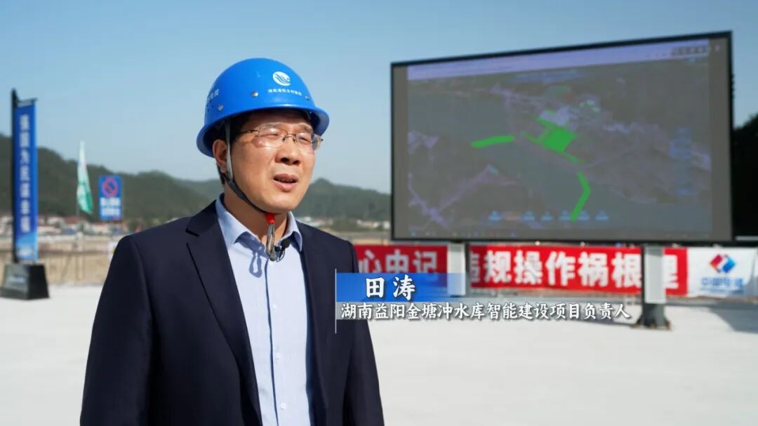 我叫田涛,来自湖南省水利水电勘测设计规划研究总院,从事水利一线工作已经有21年了。现在在金塘冲水库主要负责工程信息化和智能大坝的现场实施。