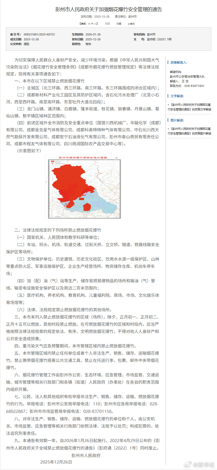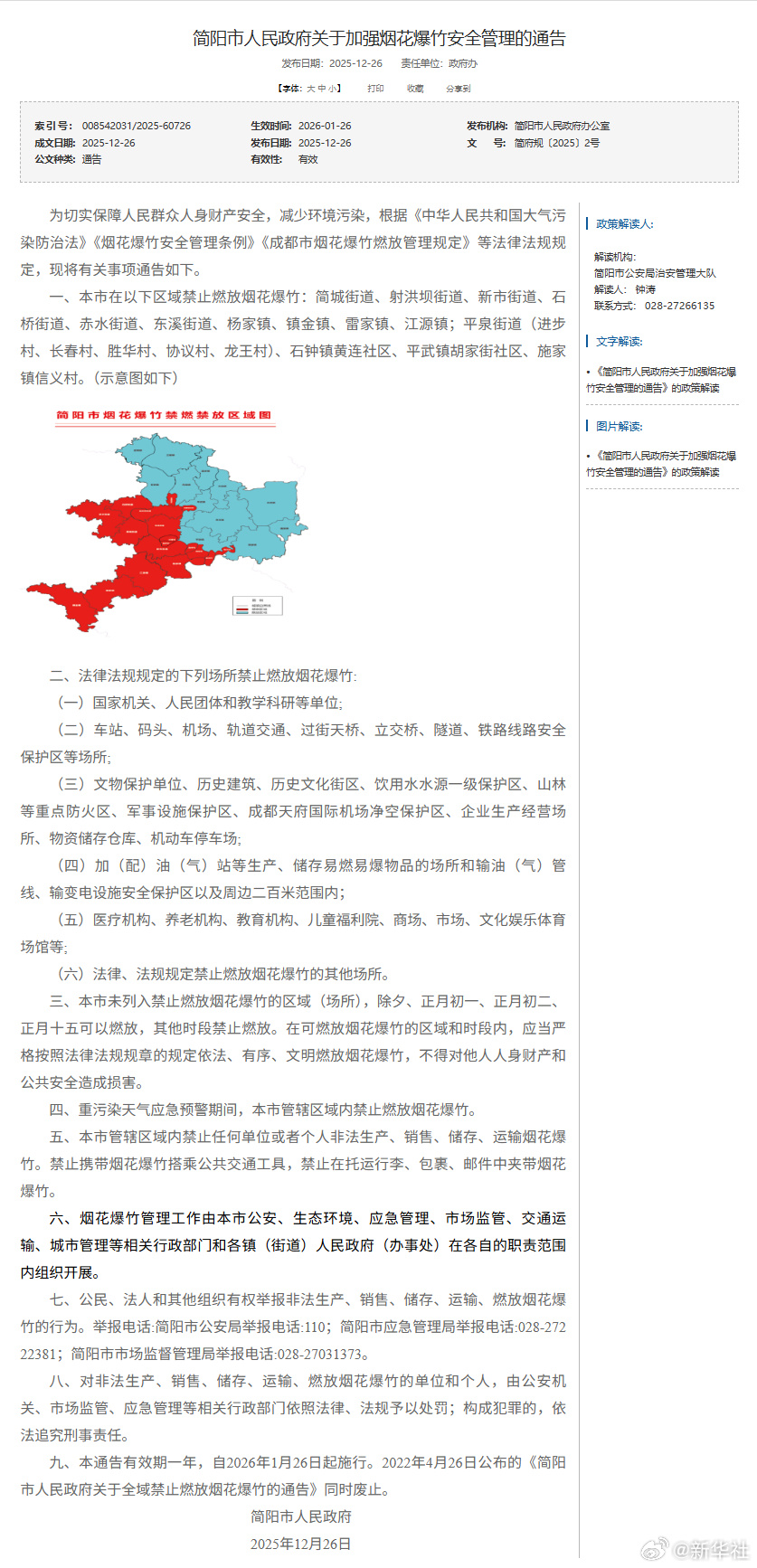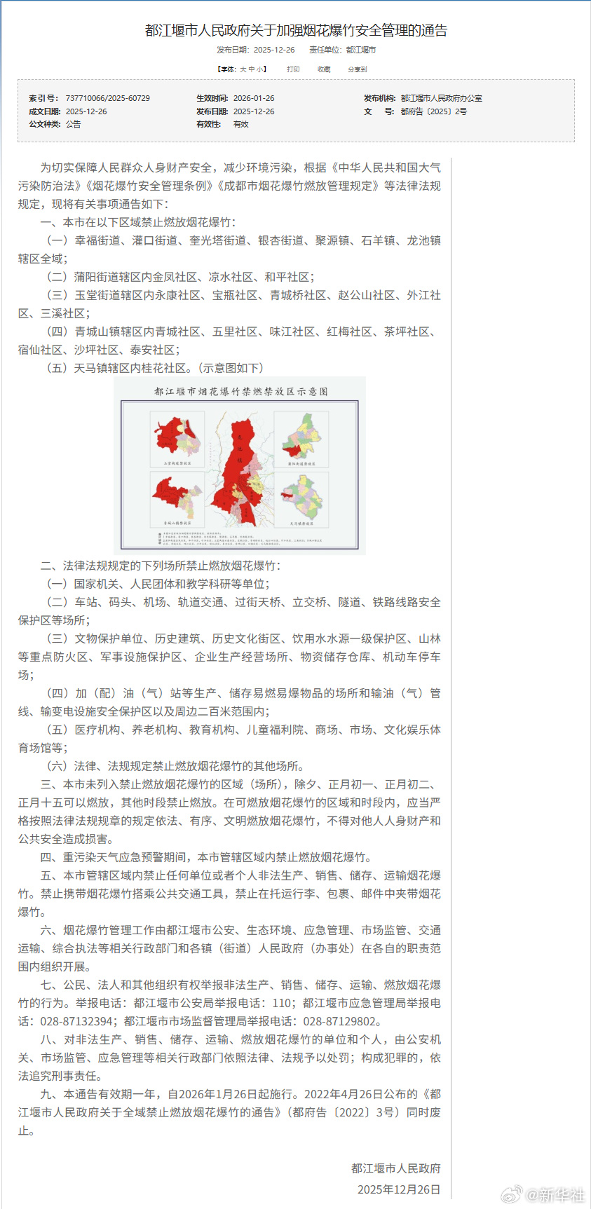 12月26日,成都8县市陆续发布烟花爆竹安全管理《通告》,对本区域的烟花爆竹燃放管理进行优化调整。《通告》显示,在成都8县市划定的限制燃放区域内,市民群众可在除夕、正月初一、正月初二、正月十五这四天燃放烟花爆竹。