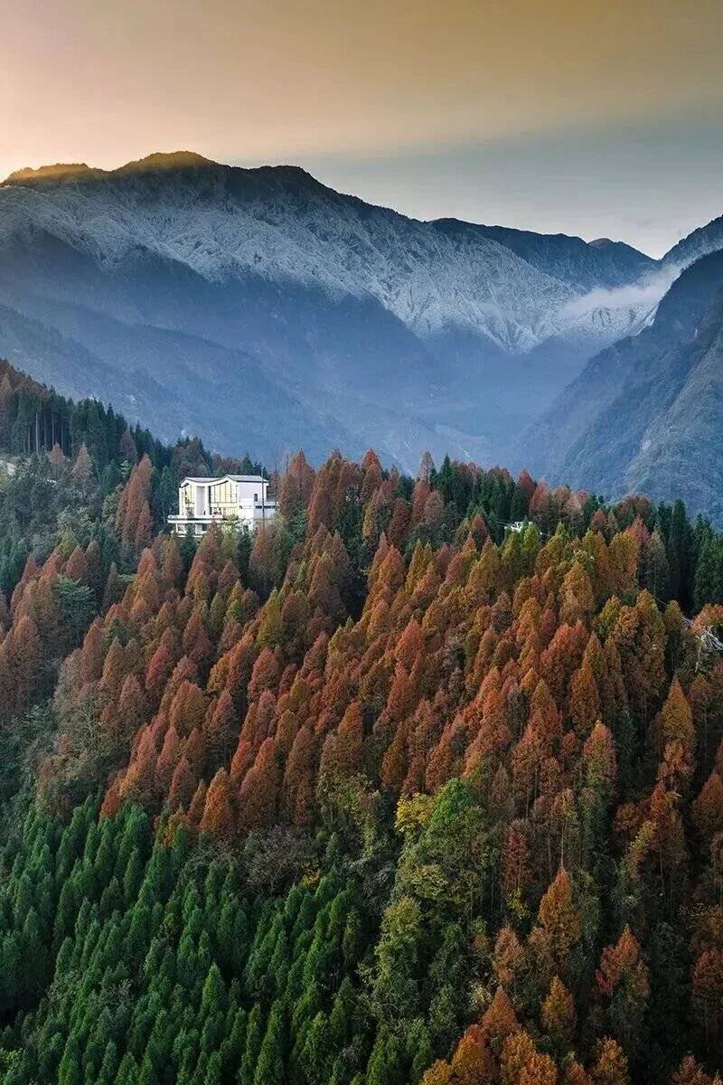 除了彭州博物馆,彭州还有一处耳熟能详的文化地标——龙兴寺。龙兴寺始建于东晋,距今已有1600多年历史。如今的龙兴寺,层叠的坡屋顶、轻盈的“玻璃盒子”、错落的空中步道、开阔的静水面与远处的龙门山脉共同构成了一幅传统气息与现代气息并存的川西画卷。在成都彭州白鹿镇,还有一处宛若童话仙境般的地方——白鹿音乐小镇。这里依山傍水而建,法式建筑点缀于青山绿水间,雕塑、广场、喷泉,无一不透露出温馨与浪漫。同时,这里还有着全国首个“森林音乐厅”,白鹿钻石音乐厅与法式风情的街道隔河相望。位于白鹿镇街口玫瑰音乐广场则是这里的打卡地标,醒目的圆形穹顶与小镇的中法风情建筑完美融合、独具特色。