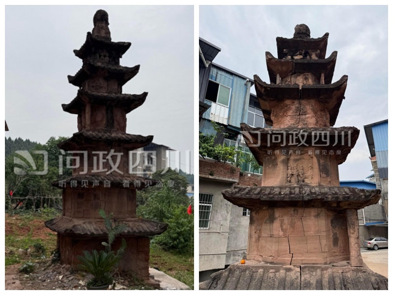 中江县文旅局回复:黄鹿字库塔位于中江县黄鹿镇小西街两座民宅之间的上山小道边,建于清代,为八面体六级楼阁式石塔。2025年11月,相关部门在其前方树立了文物安全责任公示牌。该塔石质较差,由于长期露于野地,受风吹日晒雨淋影响,塔身石刻风化、剥落严重,有多处开裂。鉴于字库塔维修的专业性,下一步,我局将按照古建筑维修专家的建议对黄鹿字库塔进行排危处理,同时委托专业机构编制维修加固方案,待方案通过审批后,积极筹集资金进行修缮。