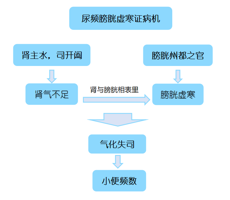 《内经》有言:“膀胱者,州都之官,津液藏焉,气化则能出矣。”尿频可归属于祖国医学“小便频数”“遗尿”“小便不禁”等范畴[9-10],主责膀胱气化失司,还与肾、肺、脾、肝、三焦密切相关。肾与膀胱相表里,膀胱的开阖有赖于肾气调控,肾阳虚则夜尿频多,肾气不固则遗尿。当季节更替、阳收寒袭之时,膀胱受冷气化无力,开阖失司,则尿意频作;加上盆地湿重易困遏阳气,川派男科治病以“天人相应,因地制宜”“辨病与辨证相结合”等思想为核心思想,重视个体化辨证,故治疗蜀地肾虚尿频者,可用缩泉丸温肾祛寒,缩尿止遗,脾肾调、膀胱开合有度,则尿频遂缓。辅以运动,动静结合、内外同调,既彰运动之效,又尽川派之宜,常四周而夜尿先减,白昼亦得畅饮无忧。