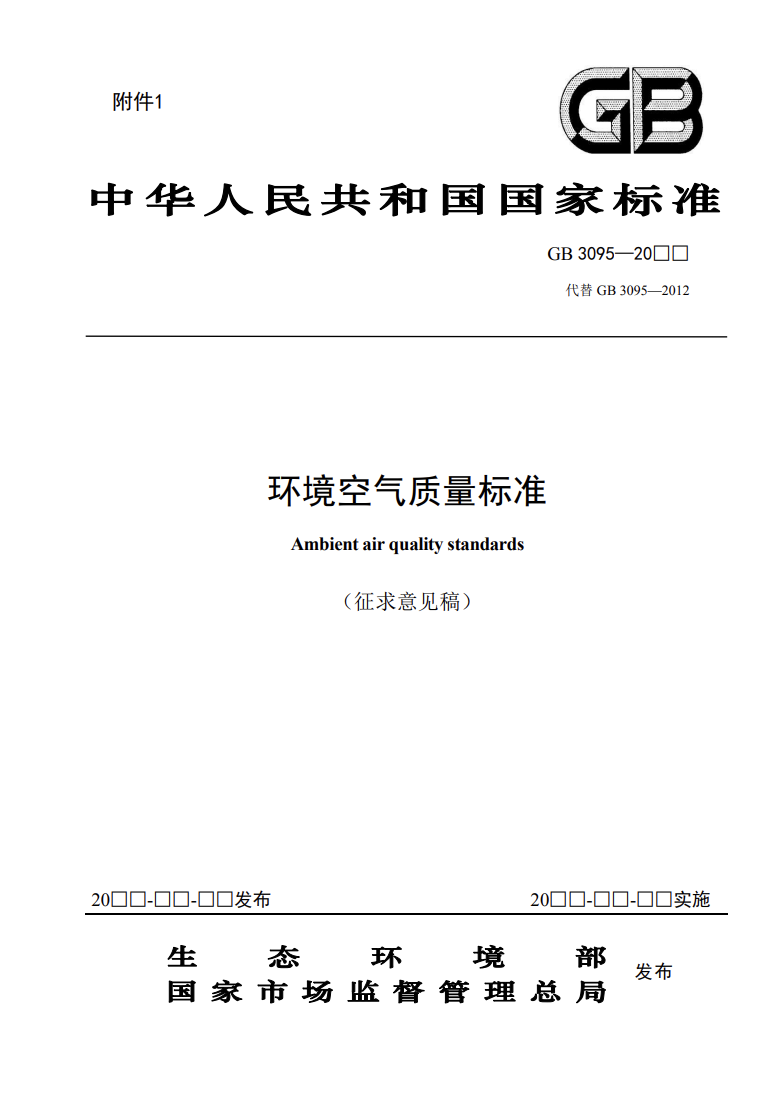 环境空气质量标准(征求意见稿)。图片来源:生态环境部网站