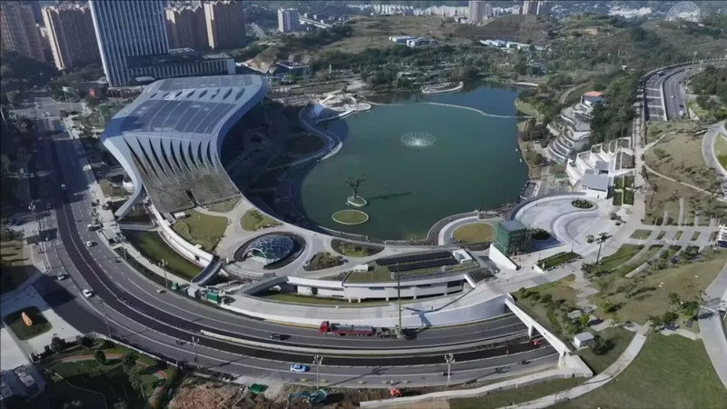 “仅仅项目屋顶,就有九种颜色的彩釉玻璃形成漂亮的渐变色彩!”项目现场负责人告诉记者,项目的建筑造型灵感来源于“金沙江浪涛”与“缓缓拉开的舞台帷幔”,流动的曲线独具艺术美感,展示出独有的音乐艺术气质。