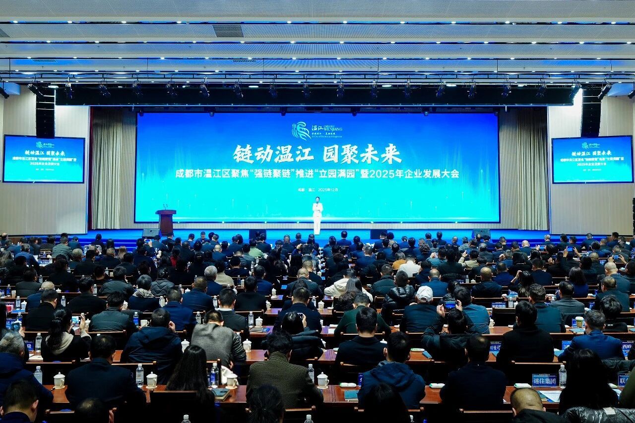这是温江区连续三年召开企业发展大会,以一座城的名义向企业致敬,以一座城的机会与企业共赢,以一座城的力量为企业护航,进一步激发企业家“再出发、走在前”的澎湃激情,凝聚全区上下聚焦“强链聚链”、高水平推进“立园满园”行动的合力。