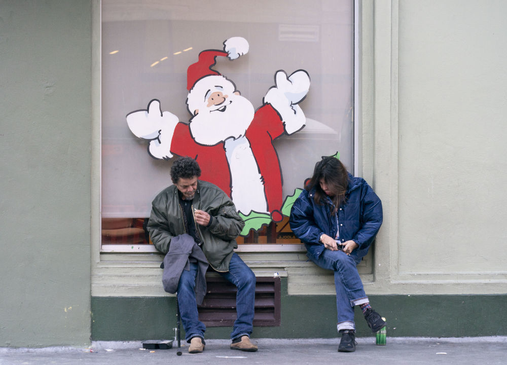 在美国加利福尼亚州旧金山街头拍摄的无家可归者。新华社发(李建国 摄)