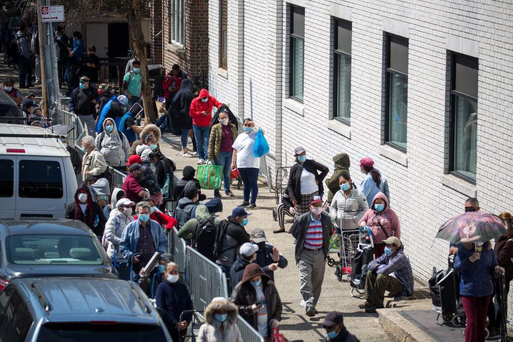人们在美国纽约一个免费食品发放点排队等待。新华社发(郭克 摄)