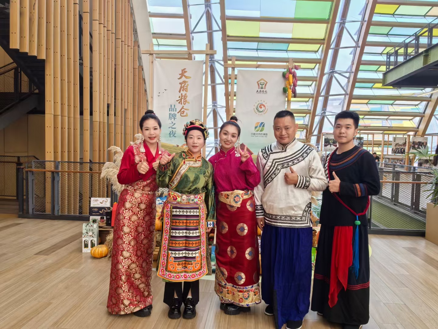 胡丽(左二)经常参加线下展会,不断拓展藏香猪产品销路。
