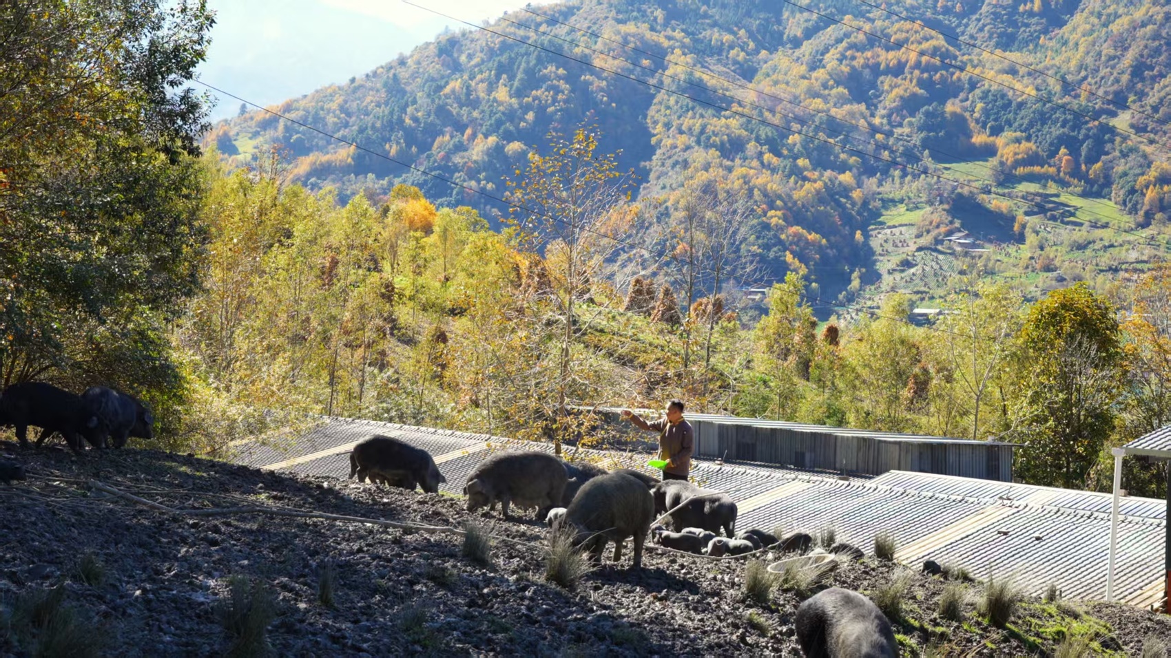 12月24日,四川宝兴县硗碛藏族乡隐在云雾之中。山野间,一群藏香猪悠闲漫步,它们不仅是这里的“原住民”,更是带动乡亲致富的“小金猪”。胡丽望着成群结队的藏香猪,回想起11年前那个决定。2014年,丈夫王富彬对她说:“我在硗碛藏族乡有100多亩山清水秀的地方,我们回乡创业吧。”让胡丽没想到的是,这句充满山野浪漫的邀请,开启了她的创业养猪路,并且越走越坚定。