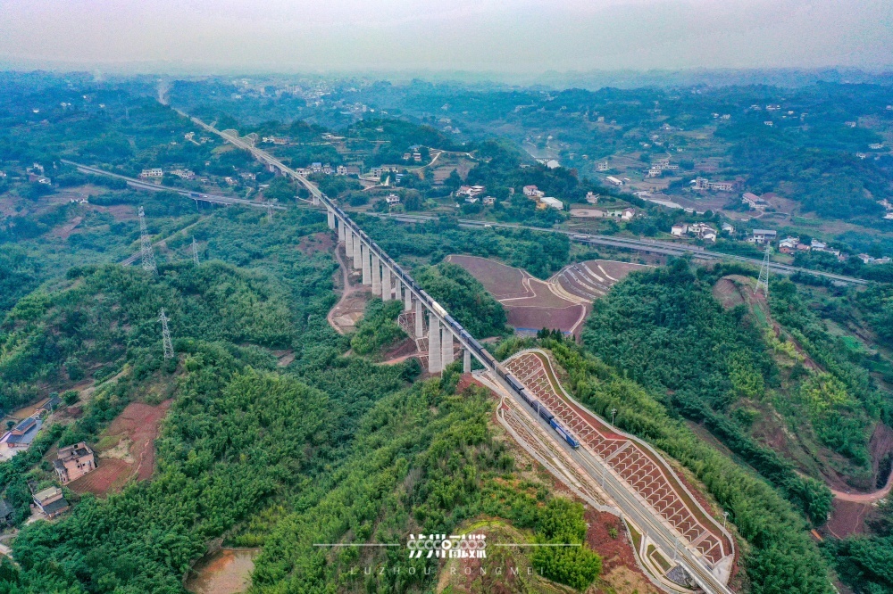 厦蓉高速公路高架下的山谷里,随着隆泸叙铁路的通车,隆叙铁路既有线完成历史使命、功成身退。殊不知,它却承载着沿线几代人关于远方的记忆:早在20世纪初,孙中山先生便在《建国方略》中系统勾画了“建设中国西南铁路系统”的宏伟蓝图。隆黄铁路(四川隆昌至贵州黄桶)作为该蓝图的重要组成部分,北接成渝铁路,南连在建的黄百铁路。隆泸、泸纳、纳叙分段构成的隆黄铁路隆昌至叙永段,属国家路网规划隆昌至黄桶铁路的其中一段,分别于1992年、2007年、2009年建成通车。如今,崭新的隆泸叙铁路铁轨熠熠生辉,正式汇入这幅波澜壮阔的画卷,将把四川的造与产,送到全球的货架。