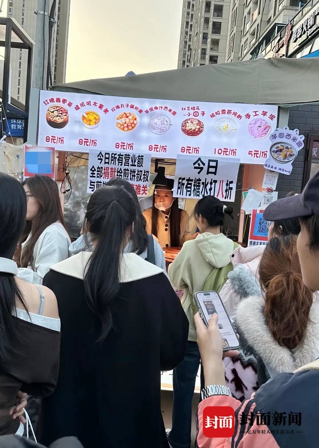 全天的所有收入,都将全部捐给小吃街一位被确诊肾癌晚期的煎饼摊主。这场由商户发起、学生响应的救助行动,在寒冷的冬日里,悄然温暖整条街巷。