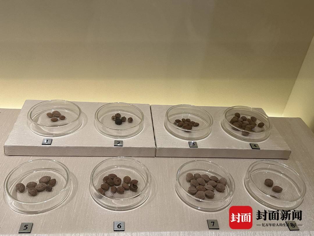 展览中展出的梅花核、甜瓜子等植物遗存也颇具看点。目前已发现的13种植物涵盖谷类、瓜类、果类和香料类,其中水稻数量最多,粟、黍较少,均包裹在树叶中随葬。考古专家推测,姜为调料,花椒或用于防腐驱蚊,这些遗存为研究楚国丧葬制度与饮食文化提供了新线索。