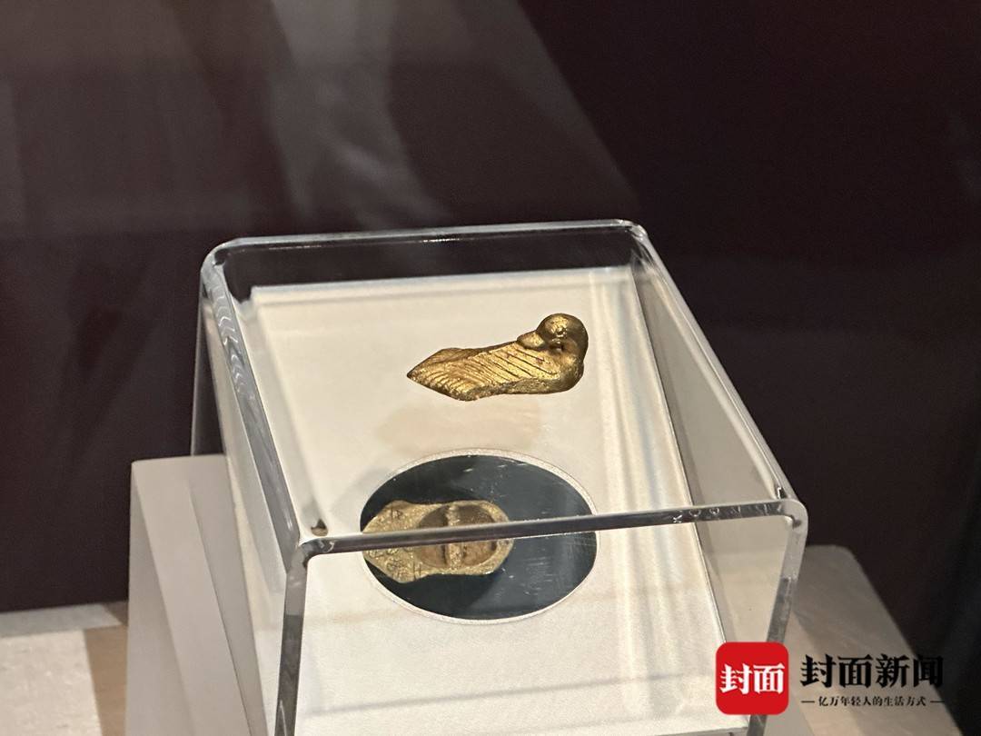 除了厚重的礼器,展览中的“巧思之作”同样令人驻足。一只引颈回首的黄金小鸭格外吸睛,这件鸭形金饰纯度高、重量达45克,羽纹刻画清晰流畅,姿态似蓄势待发。“让人联想到‘不鸣则已,一鸣惊人’的楚国典故。”国家博物馆副研究馆员、展览策展人顾志洋介绍。