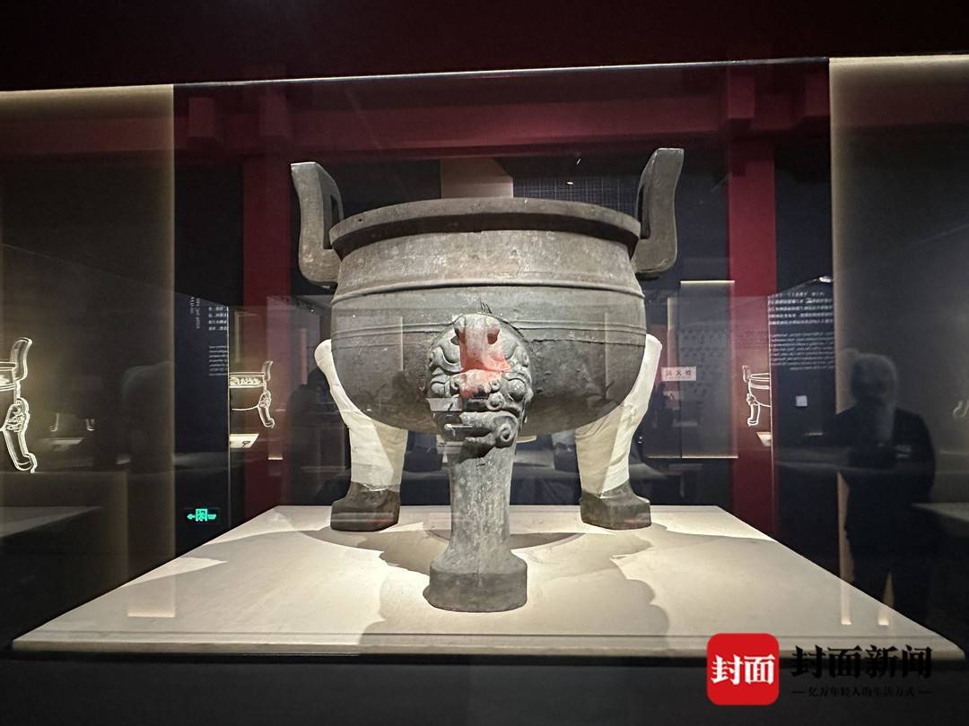 宫希成介绍,此次展览保留这一“考古原貌”,既能满足观众迫切见到大鼎“真容”的心情,也能直观感受文物保护细节。