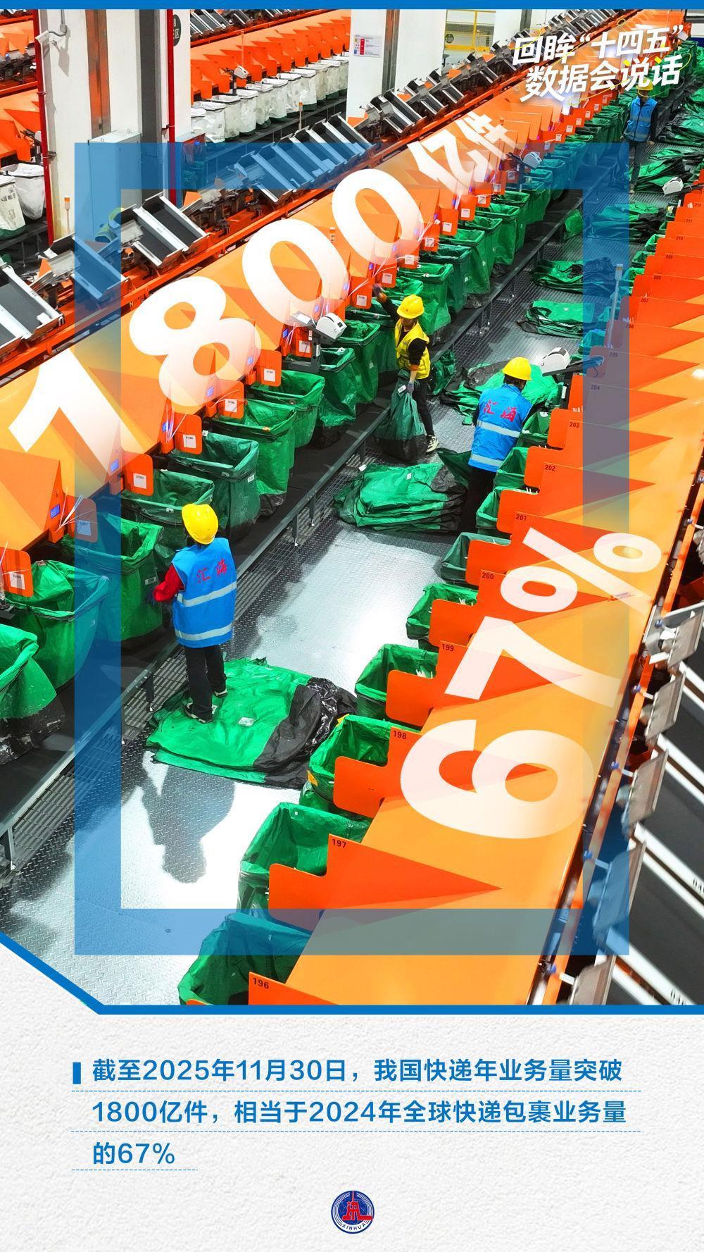 月均超160亿件,单日最高7.77亿件,每秒超6200件……1800亿件快递量质提升,折射出中国经济蓬勃活力。