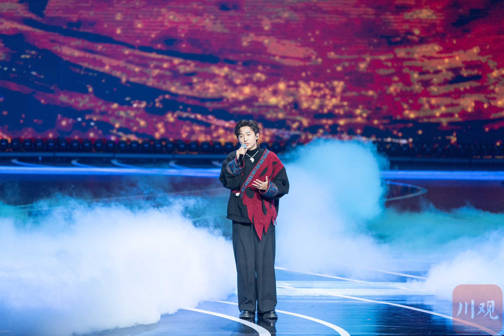 传统韵味与青春气息兼具的观感,在多个节目中都有体现。川籍知名歌手吉克隽逸,在星辰满天的舞台视效中一展歌喉,用从大山里走出来的天籁之声歌颂母爱。《宇宙树》以炫目的光影技术,将三星堆的青铜神树等代表性文物呈现在舞台中央。新编的《康定情歌》,加入了更多流行律动元素,演唱者既有川籍藏族歌手贡秋竹,也有来自哈萨克斯坦的歌手露西娅。