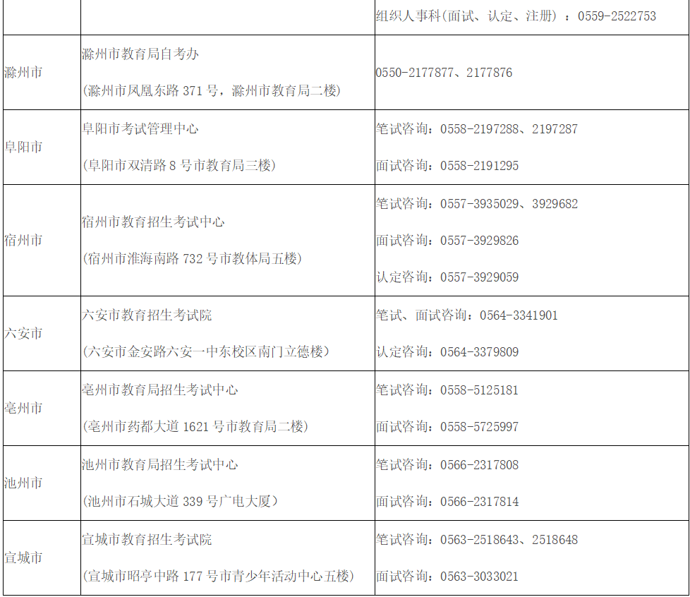 考试(笔试)报名网上审核各市联系方式