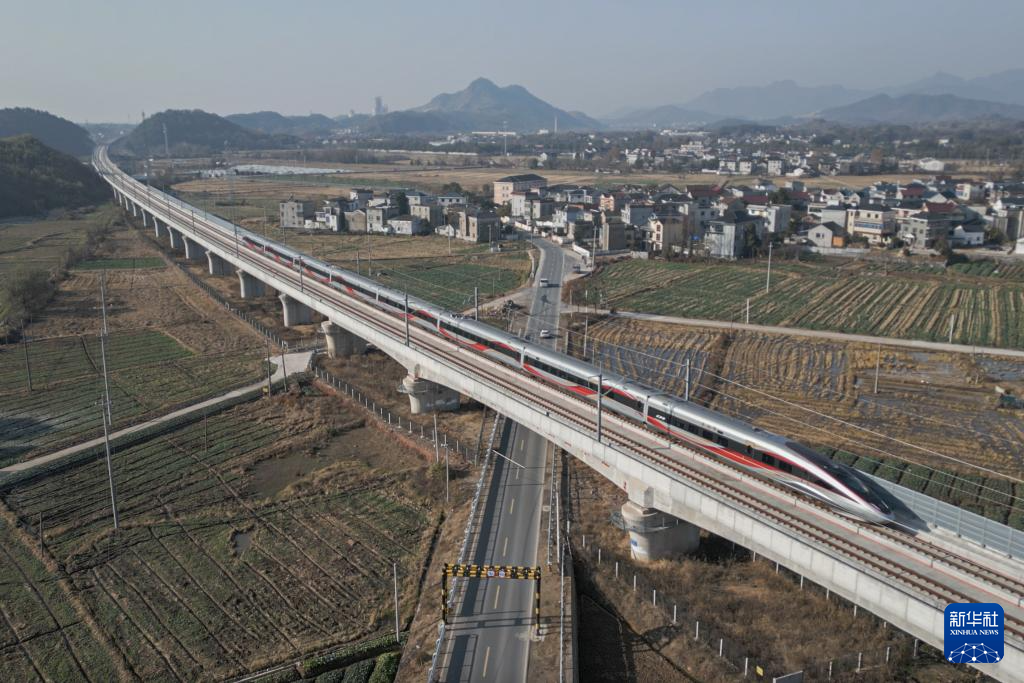 高铁飞驰,见证着中国创新能力的持续跃升。我国高速铁路技术整体达到世界领先水平,形成覆盖工程建设、装备制造和运营管理的成套技术体系。面向未来,CR450动车组进入试验验证阶段,跑出相对交会时速896公里的新纪录,在世界上首次构建时速400公里动车组顶层指标体系,进一步巩固扩大我国高铁世界领跑优势。