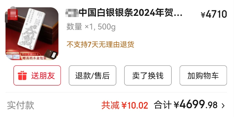 此前,沪银25日夜盘大涨5.5%,报18131元人民币/公斤,创历史新高。有网友表示,其去年4月购买的投资500g足银银条,如今价格已翻倍有余。