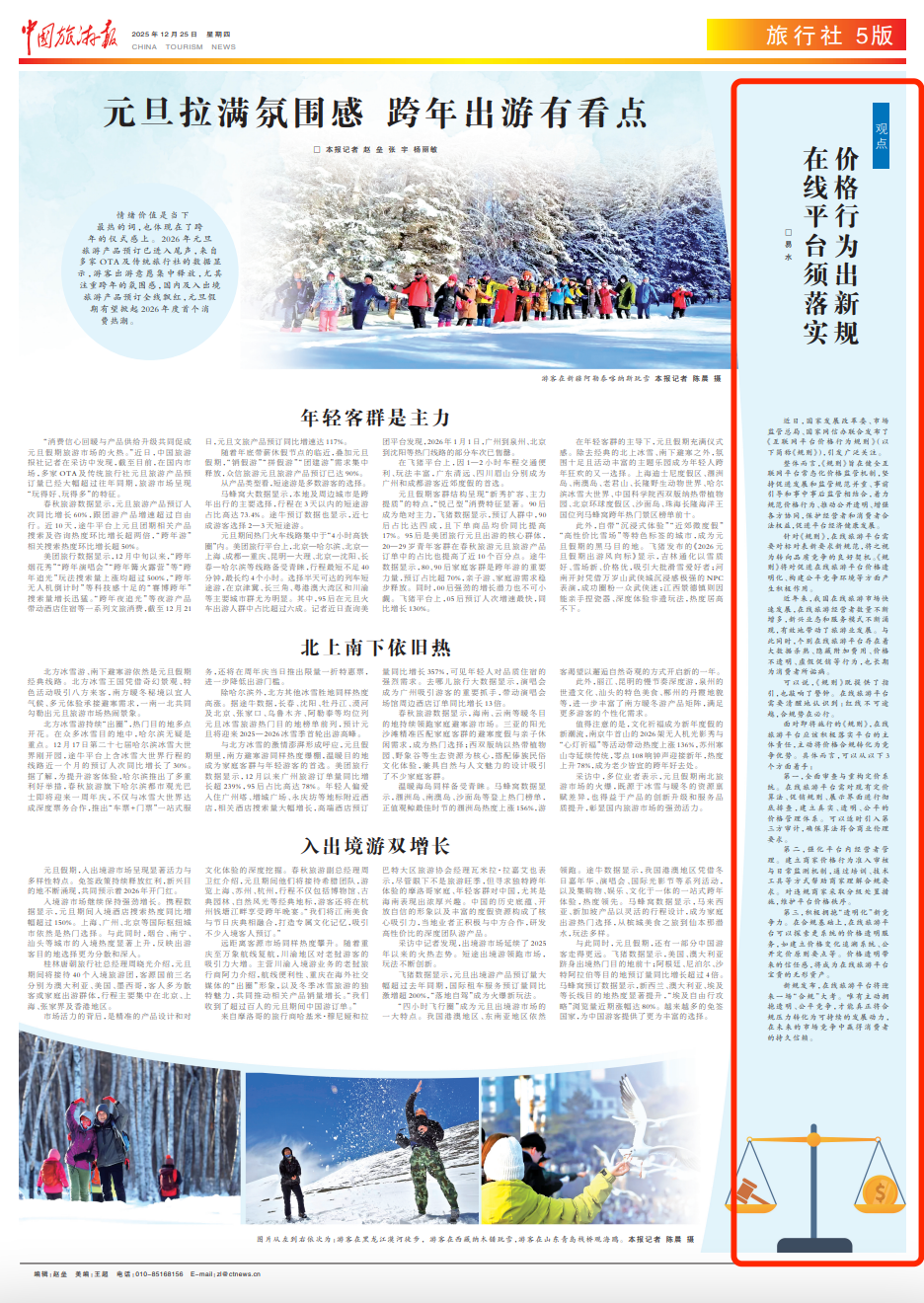 近年来,我国在线旅游市场快速发展,在线旅游经营者数量不断增多,新兴业态和服务模式不断涌现,有效地带动了旅游业发展。与此同时,个别在线旅游平台存在着大数据杀熟、隐藏附加费用、价格不透明、虚假促销等行为,也长期为消费者所诟病。