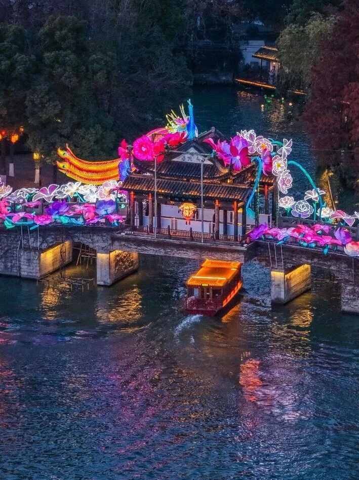 “被今年白鹭洲秦淮灯会的中式审美,惊艳到了!”