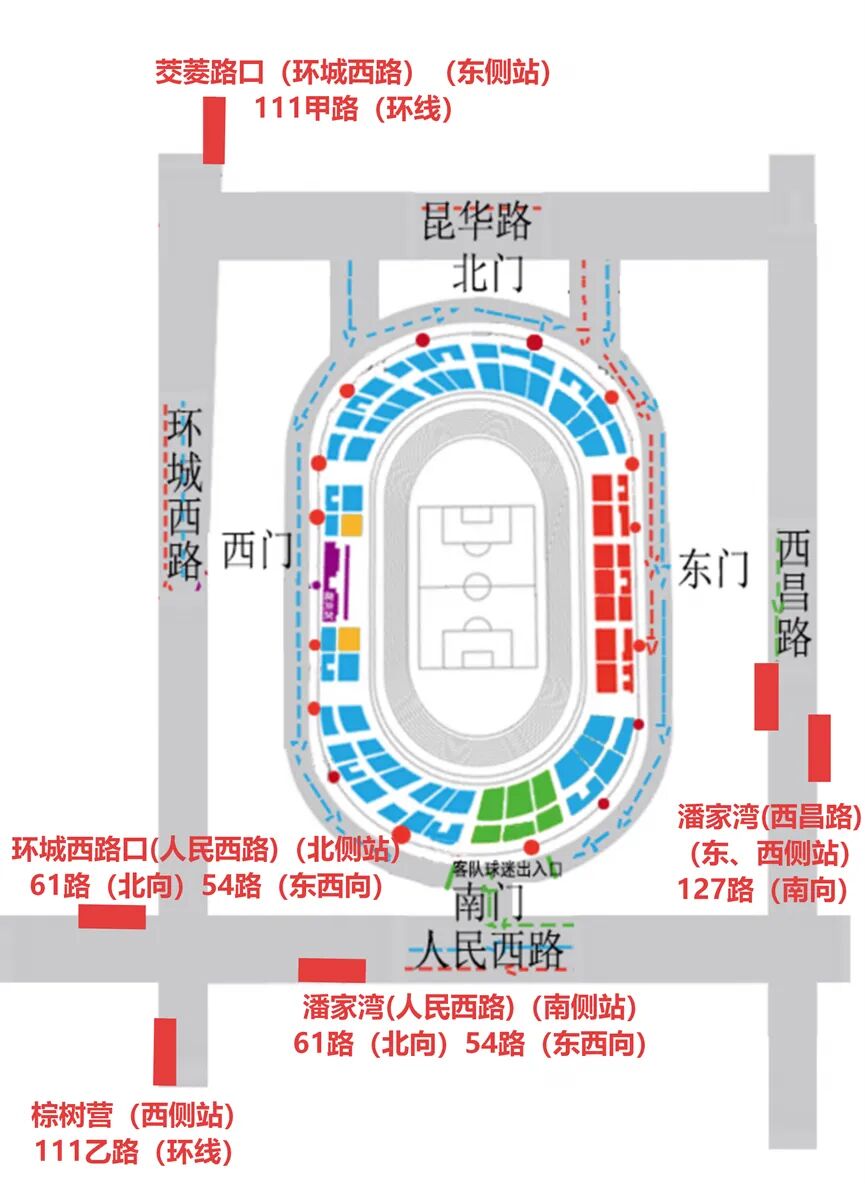 交管部门在赛事期间,将根据现场交通情况,视情况对昆明市体育场周边昆华路、环城西路、人民西路等道路采取临时性交通调整措施。公共交通已就位,记得带上您的球票,一起为自己所支持的球队,喊一声“板扎”!
