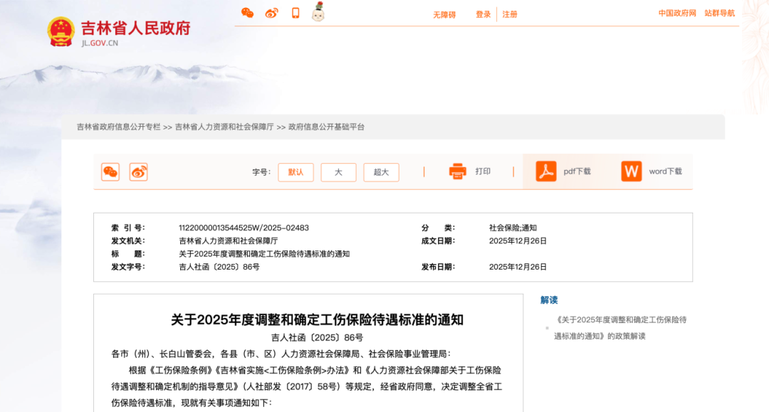 原文标题:关于2025年度调整和确定工伤保险待遇标准的通知