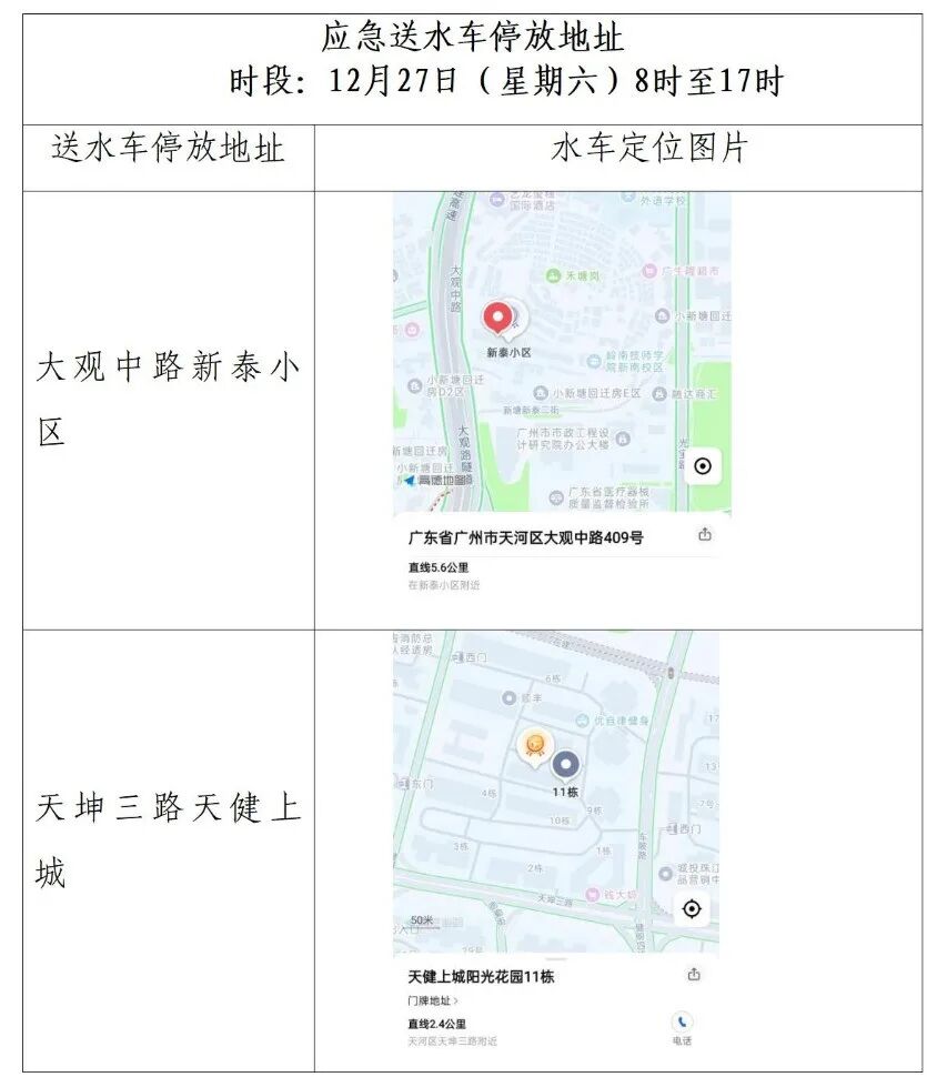 广州市自来水有限公司表示,已通过优化供水调度,将影响降至最低。同时,积极采取应急用水保障措施,尽量减少对附近居民基本生活用水的影响。12月27日(星期六)8时至17时期间,将安排12台应急送水车,在受影响区域提供取水服务。