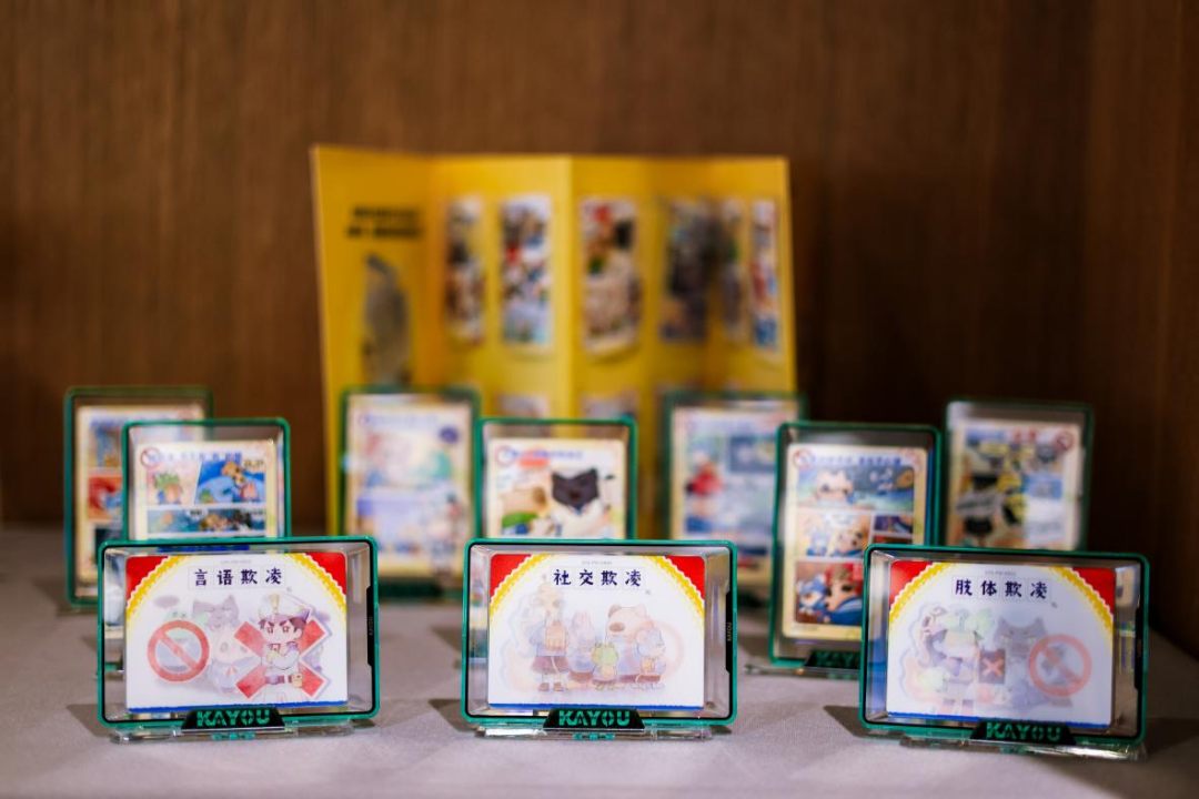 事实上,卡游对青少年成长的呵护,不止于文化传播与社交搭建,更延伸到了公益赋能的深水区。针对校园欺凌这一危害青少年心理健康的“顽疾”,卡游不仅与《南方都市报》联合发布《预防校园欺凌社会认知度调查报告》,更创新性地推出了“反欺凌”卡牌及配套图书,将严肃的法治教育转化为青少年可感知、可实践的生活技能。