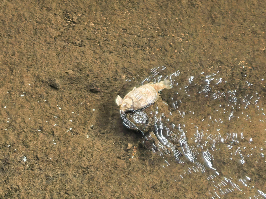 当天上午,记者从大沙河临近入海口的赛艇广场出发,沿河道向北步行至茶光村临近河段。沿途观察发现,大沙河当前水位较以往明显降低,部分区域河床裸露,但河水整体清澈,未出现浑浊现象。全程仅在北环沙河西立交桥底河段发现两条死鱼,其余河段未发现大量死鱼堆积或成片漂浮垃圾,现场也未闻到明显恶臭。