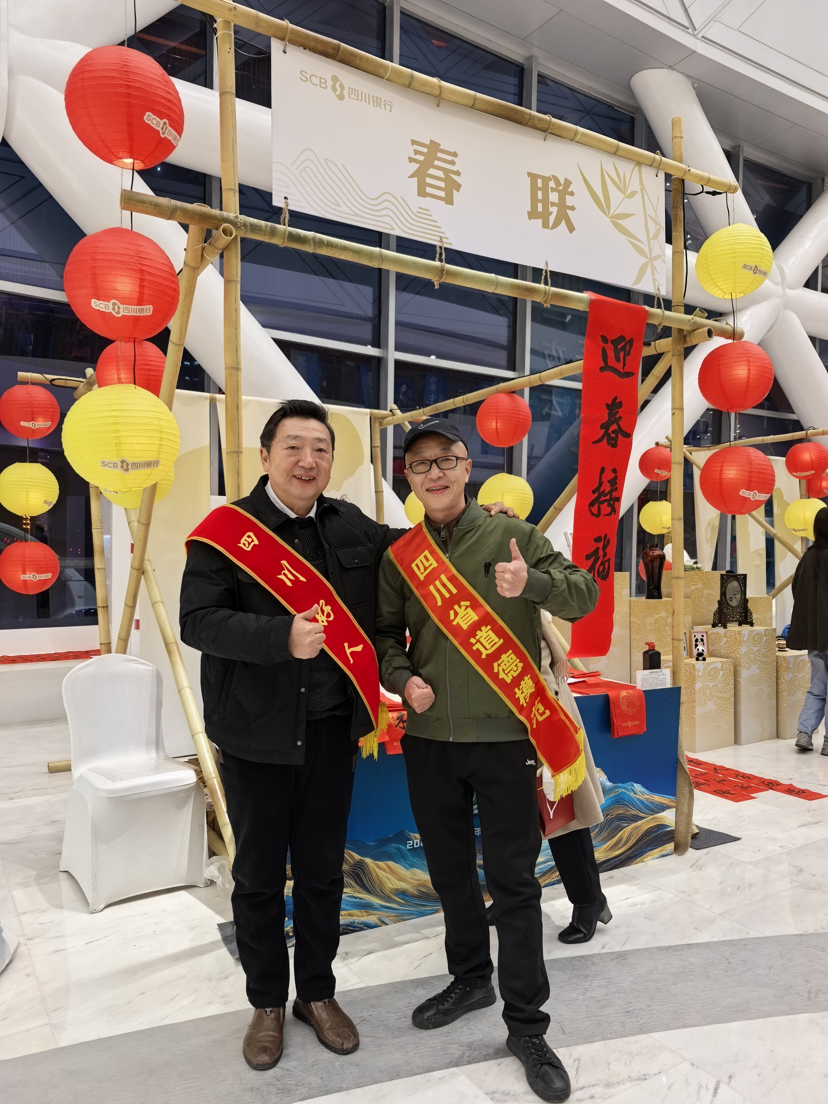 “四川好人”王纲与四川省道德模范蒲斌在场外合影。