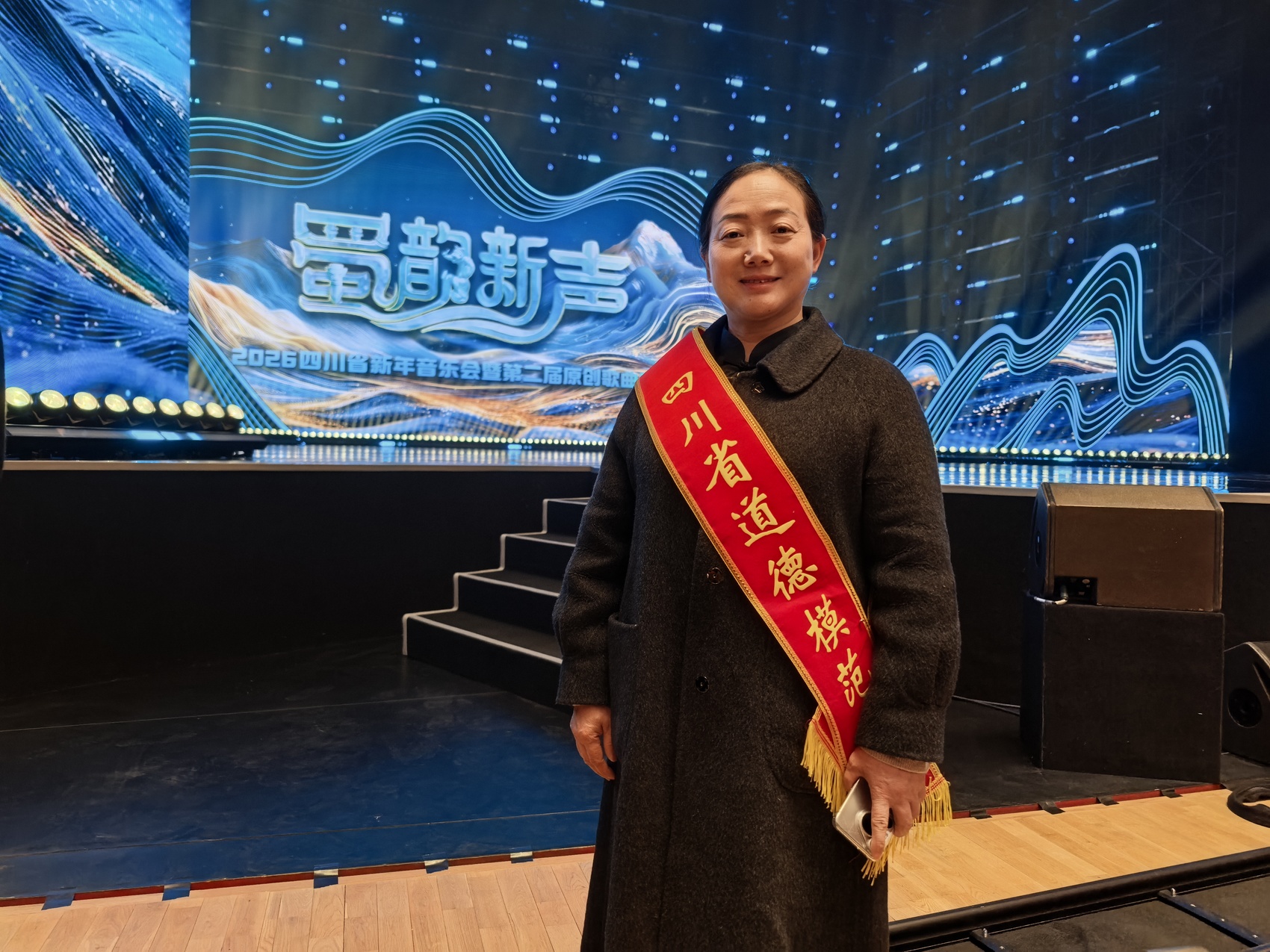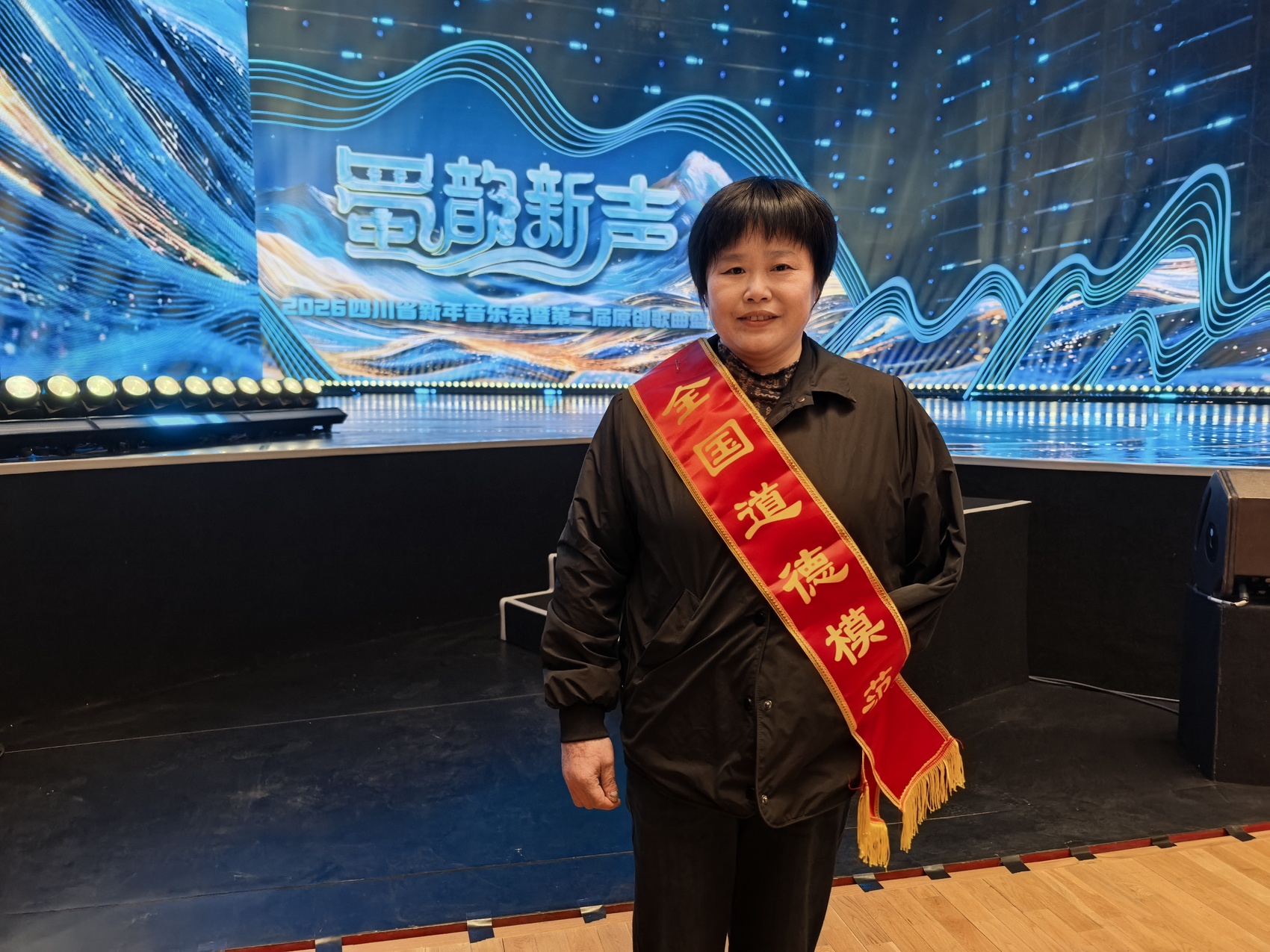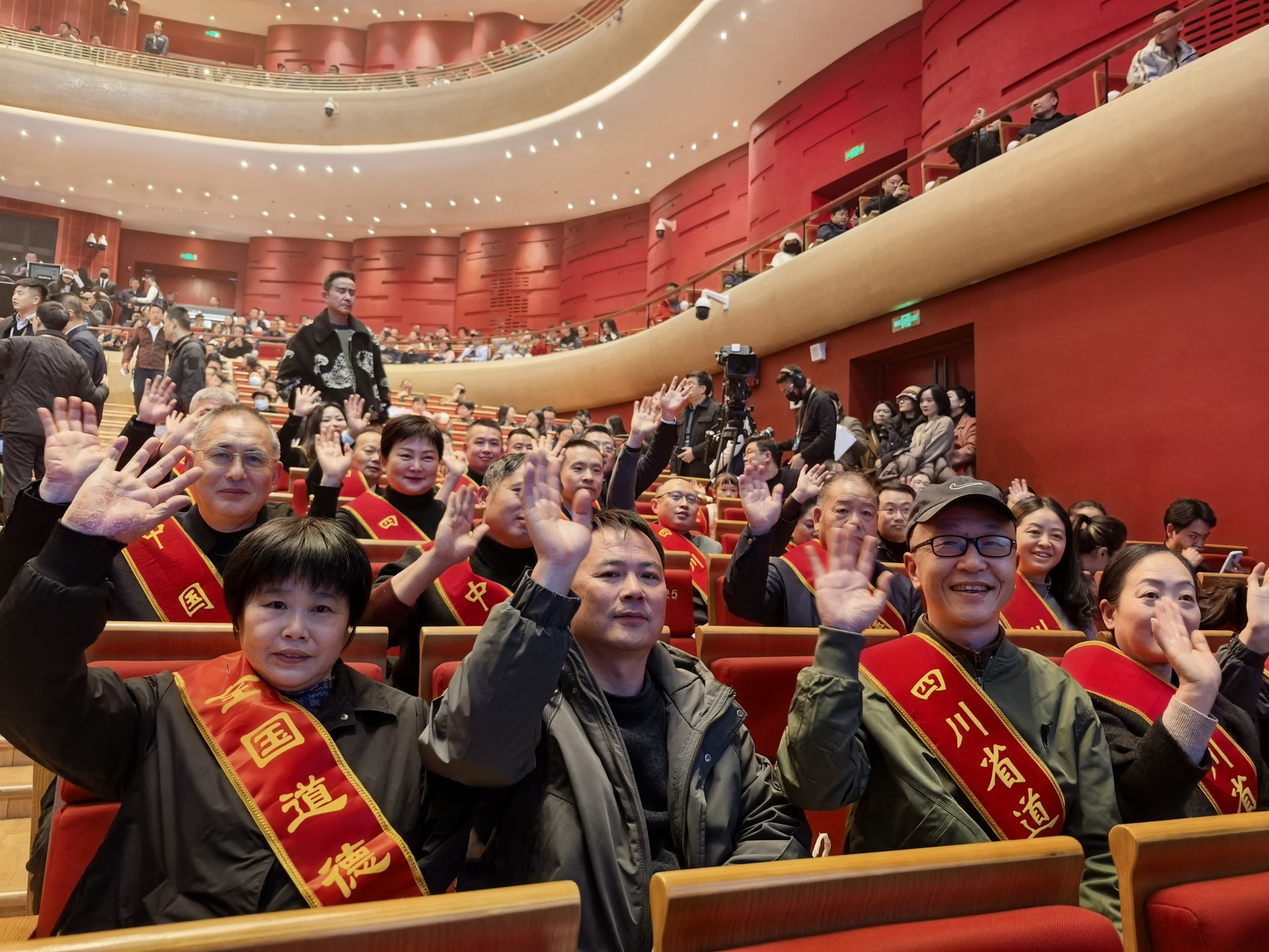 舞台左侧观众席中,60名身披绶带的观众格外引人注目——他们是来自全省各地的全国道德模范、全国文明家庭、全国新时代好少年、中国好人、四川好人等先进典型代表,第九届全国道德模范冉体兰便是其中一员。