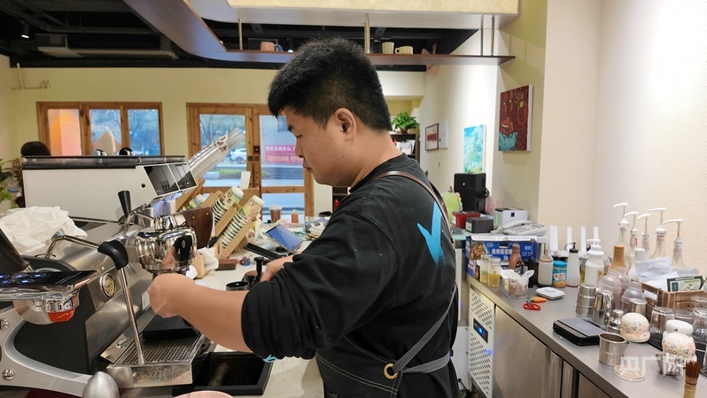 丁阳正在制作咖啡(央广网记者黄珂岚 摄)