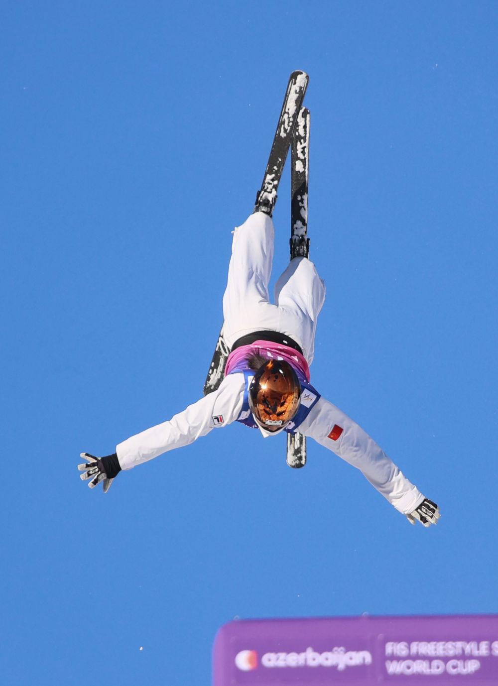 ↑2025年12月21日,中国一队选手徐梦桃在国际雪联自由式滑雪空中技巧世界杯(云顶站)混合团体项目决赛中。