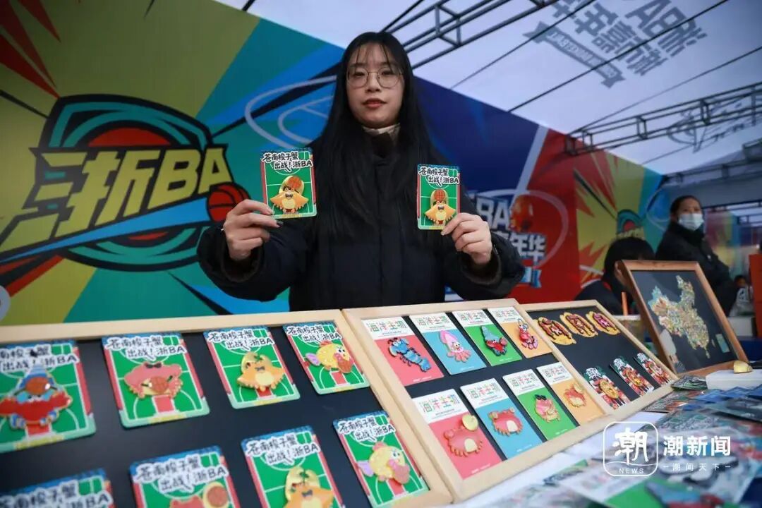热闹不只在球场内,赛场之外“2025浙BA城市嘉年华”火热开启。全省11地市的潮玩、运动与烟火气,统统“打包”到了拱墅运河体育公园:市集里人气爆棚,长兴干挑面、金华火腿、衢州卤味、庆元甜橘柚等地方特色组成了特产美食阵列,台州和普陀还带来了大黄鱼现场“PK”;几处互动打卡游戏,也成为球迷们驻足的焦点,浙BA队徽墙、跳跃摸高挑战、比臂展、考反应、投篮机等多彩活动趣味十足。