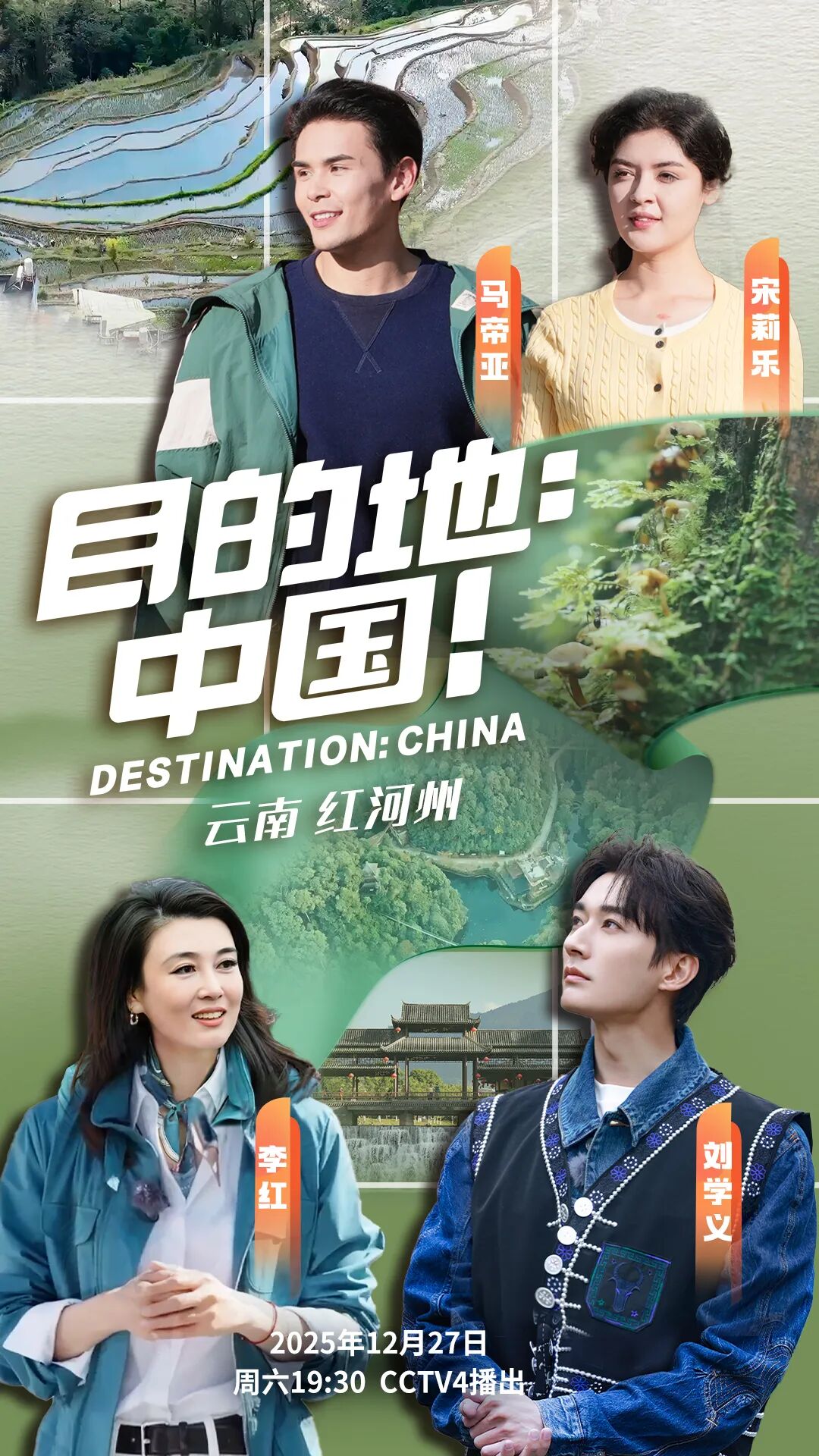 《目的地:中国!》全新旅程启航!12月27日19:30锁定CCTV4,来自意大利与美国的两位免签探路官马帝亚、宋莉乐,将与总台主持人李红、演员刘学义同行,走进云南省红河哈尼族彝族自治州。