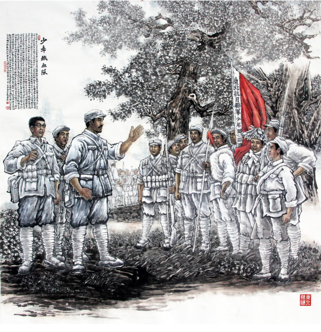 辽宁省民间艺术家彭庆峰绘制的《少年铁血队》(少年营后改名为抗联一路军少年铁血队)