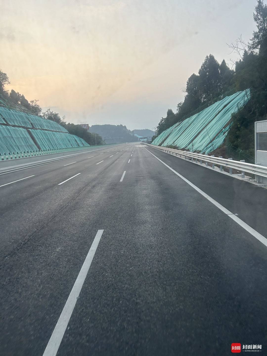 26日上午9点半,记者乘车从成都收费站驶入全新的成南高速,第一感觉是宽敞舒展:绝大部分路段为双向8车道,更为开阔、通畅,视野更好;行驶中车辆轨迹稳定,各转向匝道线性流畅,全程无明显颠簸;路面标线清晰,沿线护栏已基本装完,仅剩标识标牌等部分交安设施仍在安装。