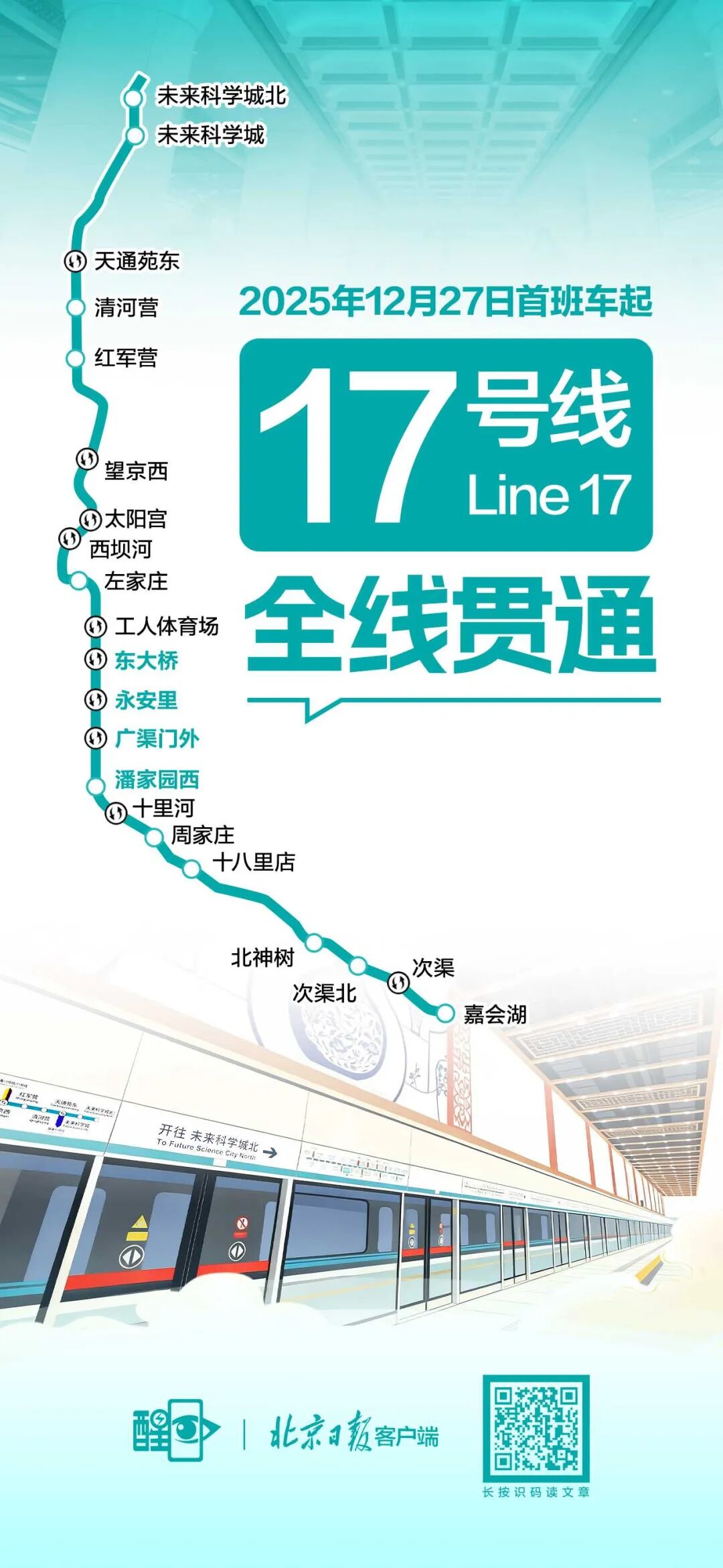 官宣!北京3条(段)地铁新线,明天开通试运营