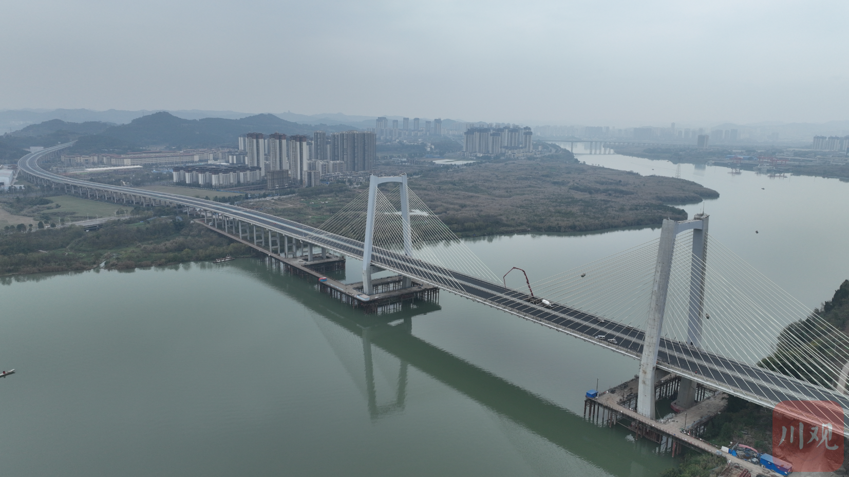 12月26日,航拍成南高速扩容项目南充段的嘉陵江特大桥。