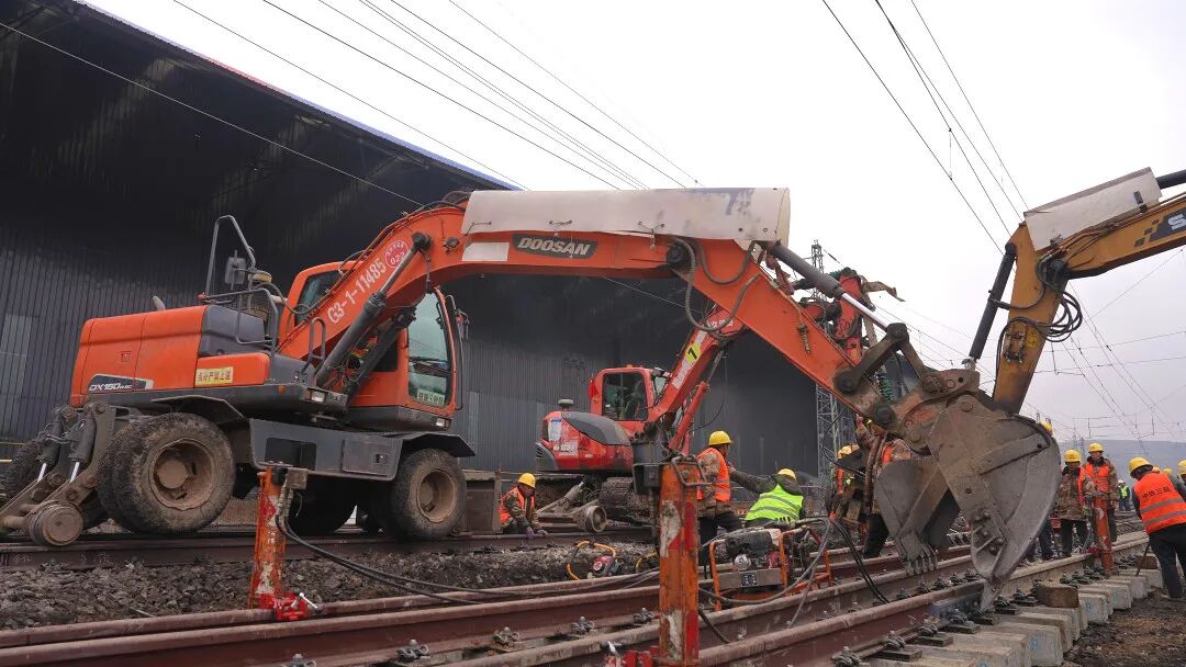 神朔铁路3亿吨扩能改造途径线路最高海拔1531米,最大坡度12‰、最小曲线半径仅400米,加之环保要求、文化保护等,施工难度巨大。项目施工采用“三级联控”指挥体系,实施“一站一策”,精准研究施工方案,核定施工流程,利用天窗点分阶段推进。