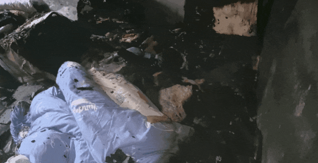 户主的妈妈看到被烧毁的家