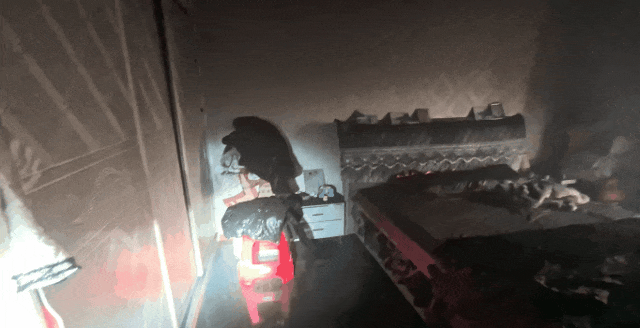 消防员在屋内展开扑救。