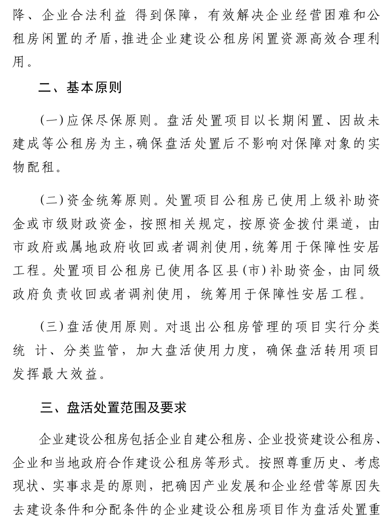 盘活处置项目以长期闲置、因故未建成等公租房为主,确保盘活处置后不影响对保障对象的实物配租。