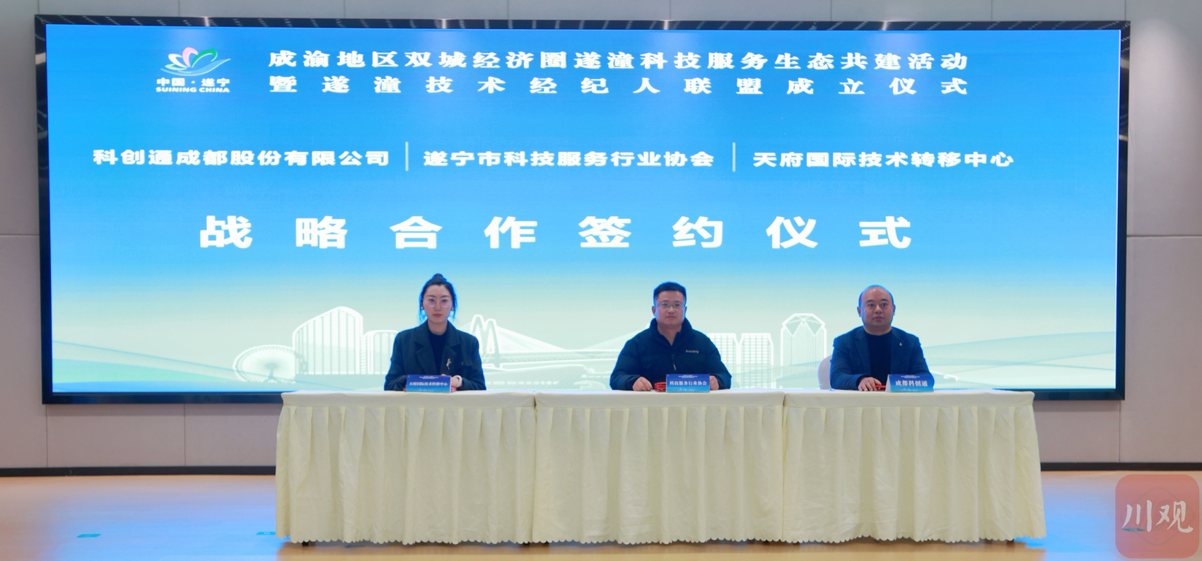 同时,遂宁市科技服务行业协会与科创通成都股份有限公司、天府国际技术转移中心、南昌大学重庆研究院等多家川渝知名科技服务平台现场签署战略合作协议。