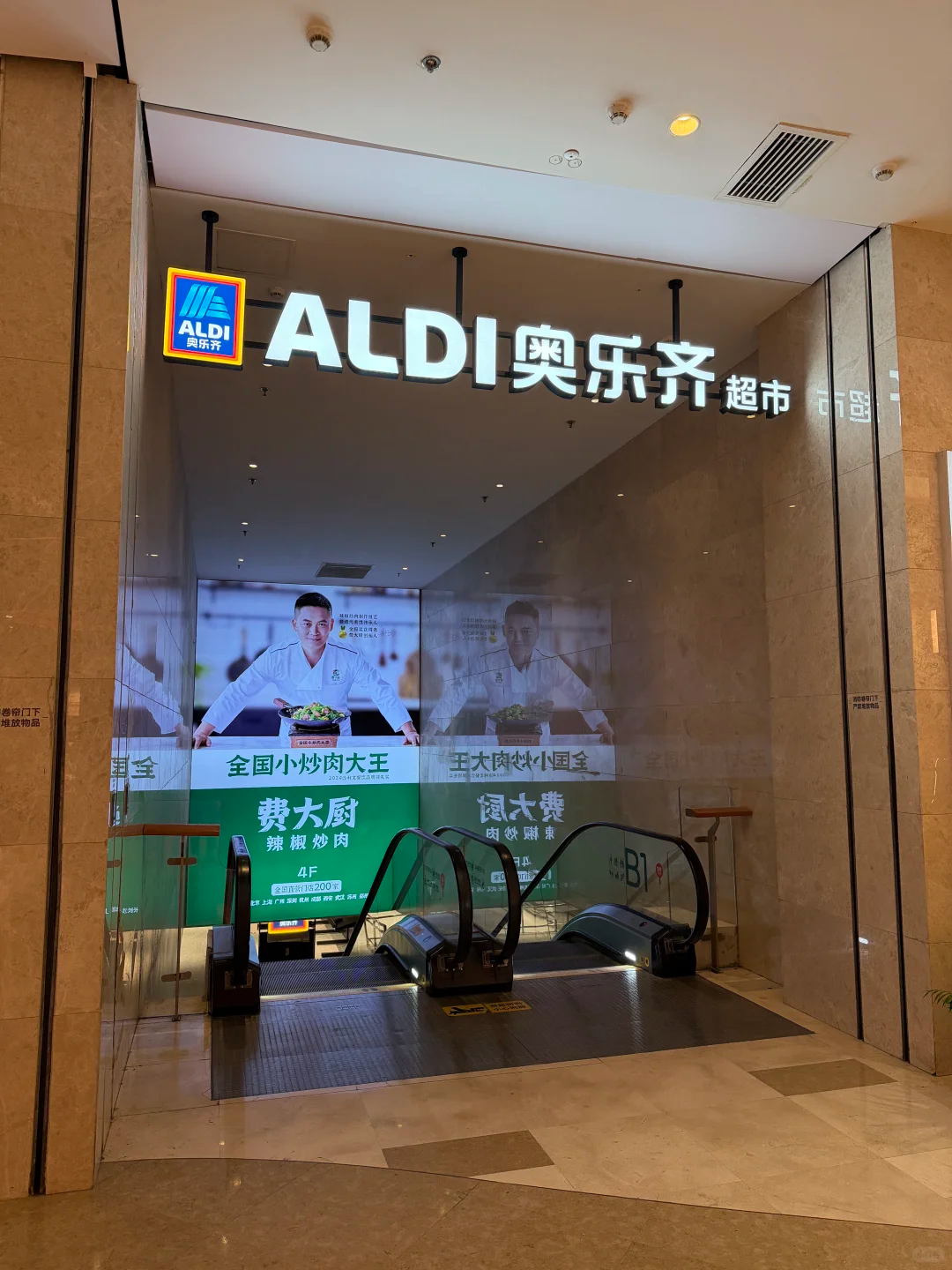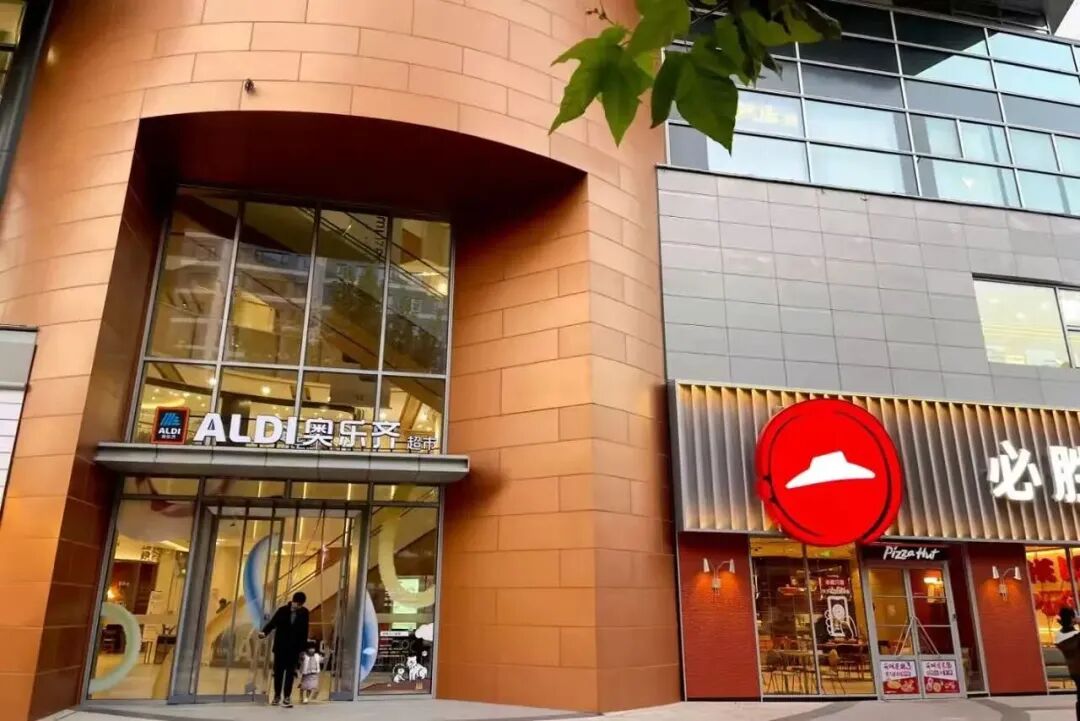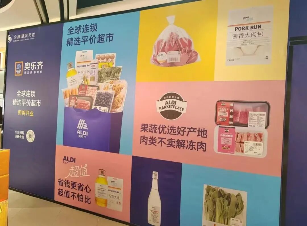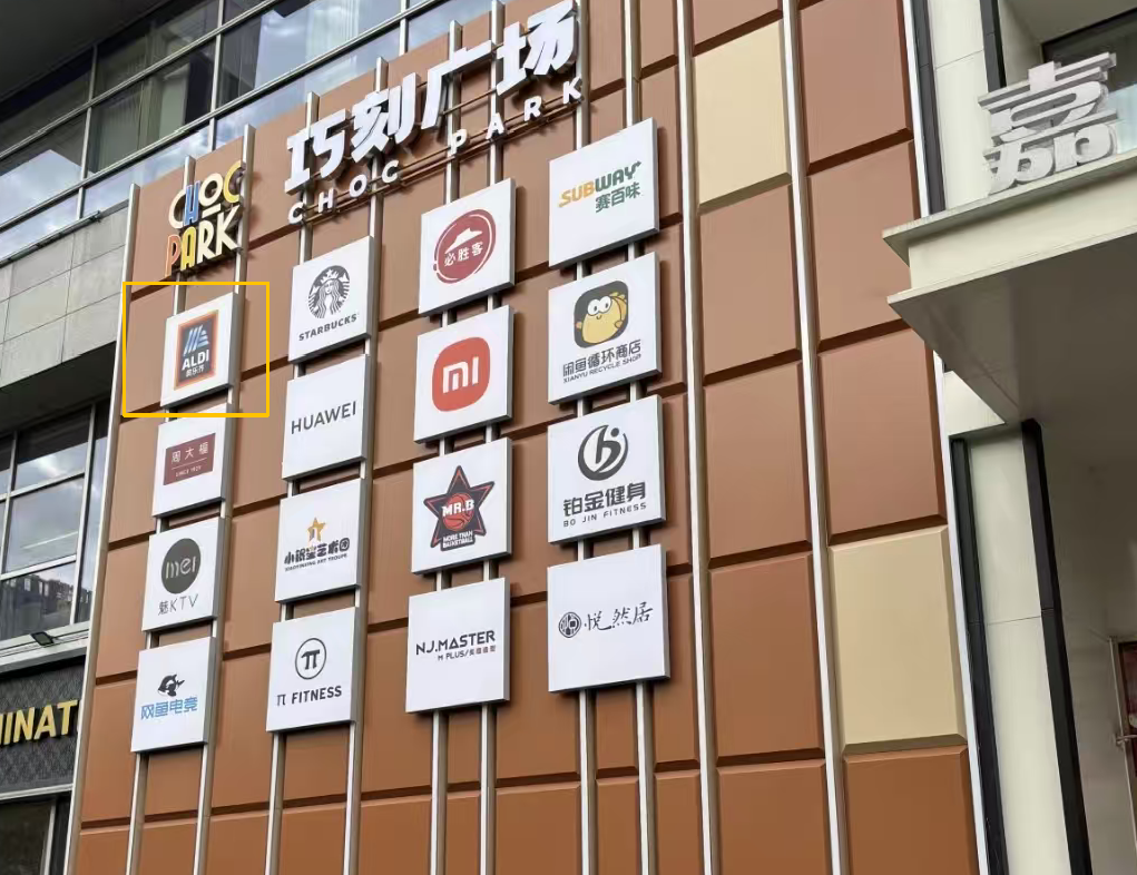 商场的外立面上也挂上了奥乐齐的LOGO。