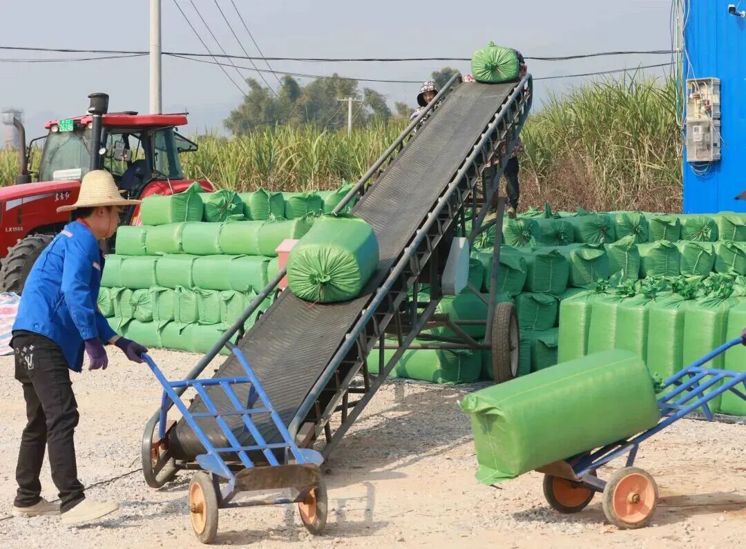 2025年—2026年榨季,桂平市甘蔗种植面积达9.81万亩,预计产生9.81万吨蔗叶。通过饲料化、燃料化、肥料化等多种途径,农户额外增收,企业获得原料,环境得到保护,形成了三方共赢的局面。在大湾镇,专业种养合作社每天能收购20吨到30吨蔗叶,按一毛钱一斤的价格给农户结算。收来的蔗叶经过粉碎、发酵,做成青贮饲料喂牛,实现了饲料化利用。机械化水平也在不断提升。分布式机收设备从去年的两台增加到10台,效率大幅提高。